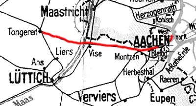 Aachen West 0,03 - Grenze Deutschland/Belgien 5,380 = [km 44,9 - Montzen Gare 37,0 - Tongeren 0,0]