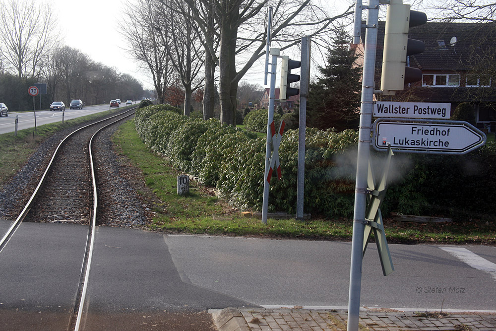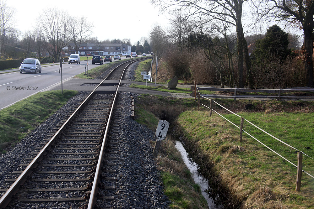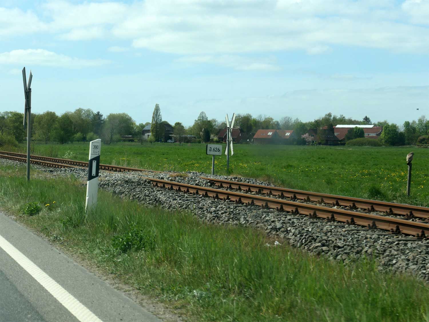 BÜ km 9,369 (verdeckt); BÜ km 9,377 und km 9,4 zwischen Moordorf und Walle - Blick Richtung Abelitz