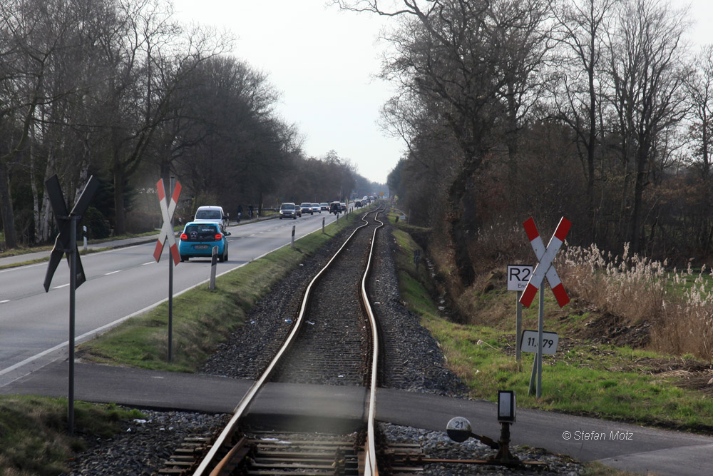 BÜ km 5,188 und km 5,2 zwischen Victorbur und Moordorf - Blick Richtung Abelitz