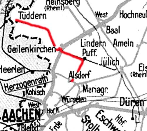 Alsdorf (Kr Aachen ) 0,0 - Geilenkirchen Kreisbf 16,3 - Tüddern 37,7 (Spurweite 1000 mm)