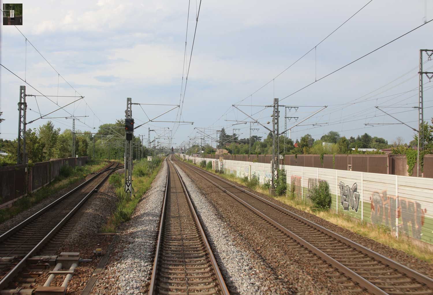 Rechts hinter der Schallschutzwand km 138,4 der Strecke