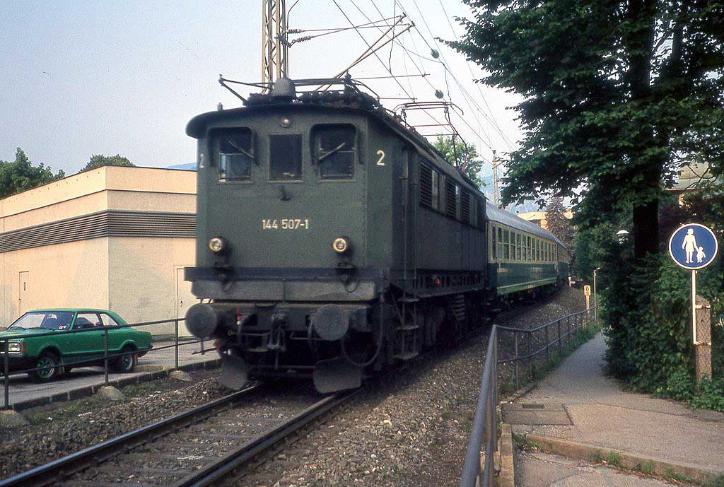 km 17,6 - 144 505 mit ihrem Personenzug auf dem Weg nach Freilassing