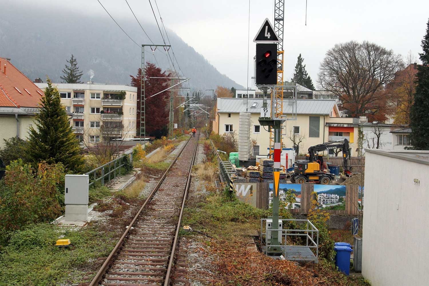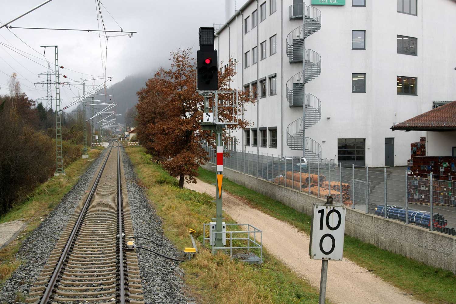 km 18,4 (Tafel und Stein) am Einfahrsignal von Berchtesgaden Hbf