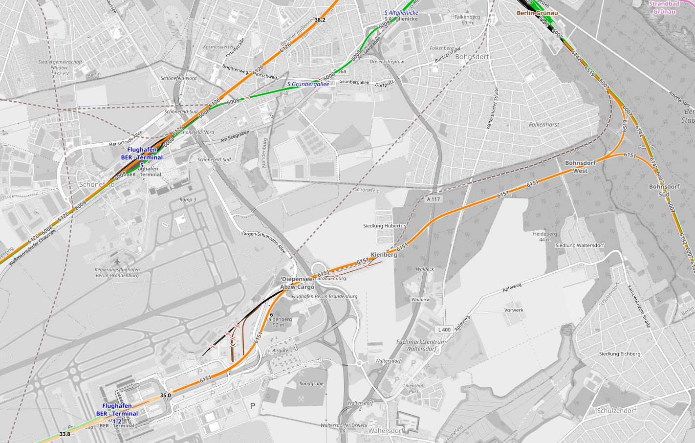 Abzw Glasower Damm Ost 27,86 - Abzw Selchow Süd 30,79 - Berlin Flughafen BER 34,50 - Abzw Bohnsdorf West 40,85 - Abzw Bohnsdorf Süd 42,08 (6151)