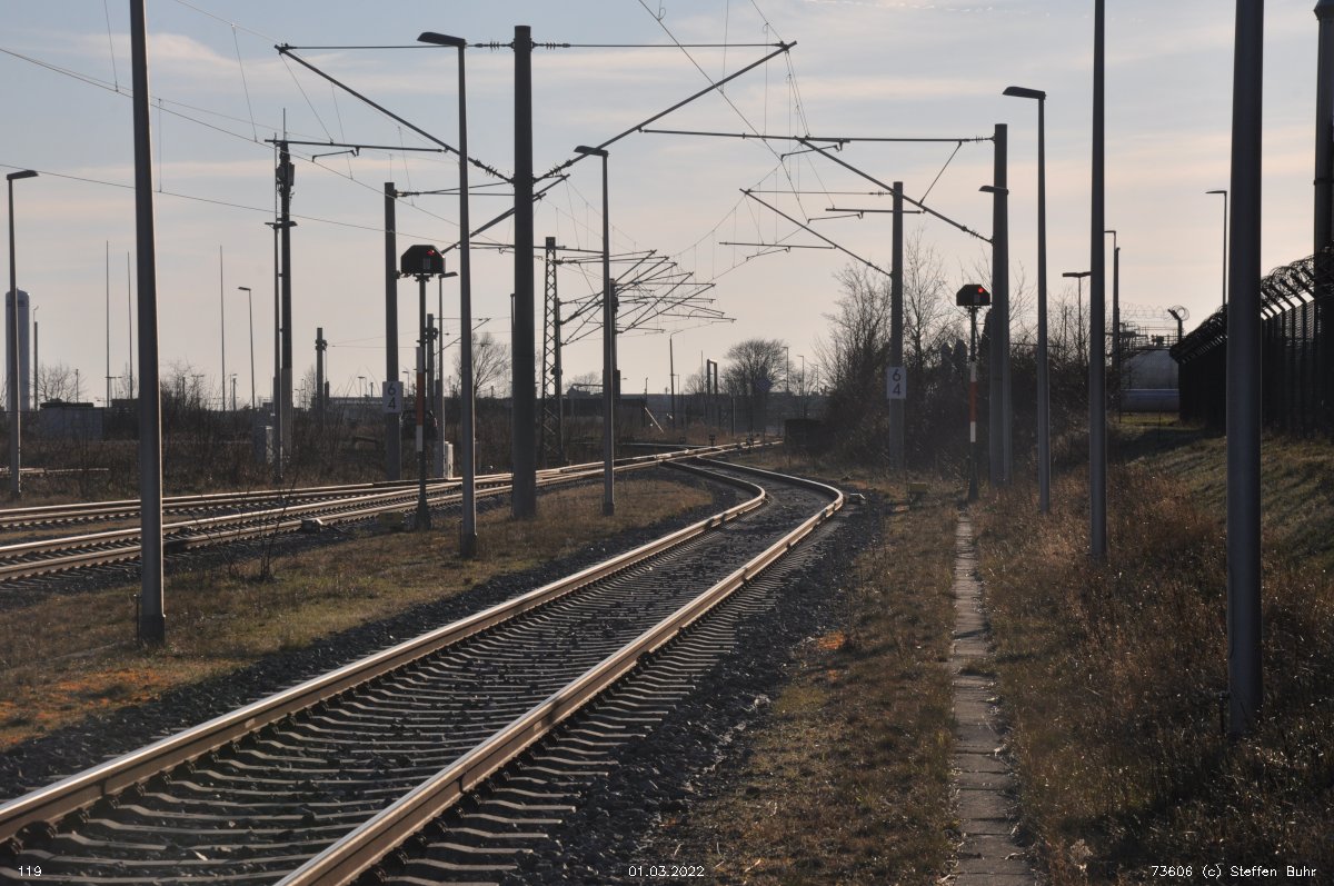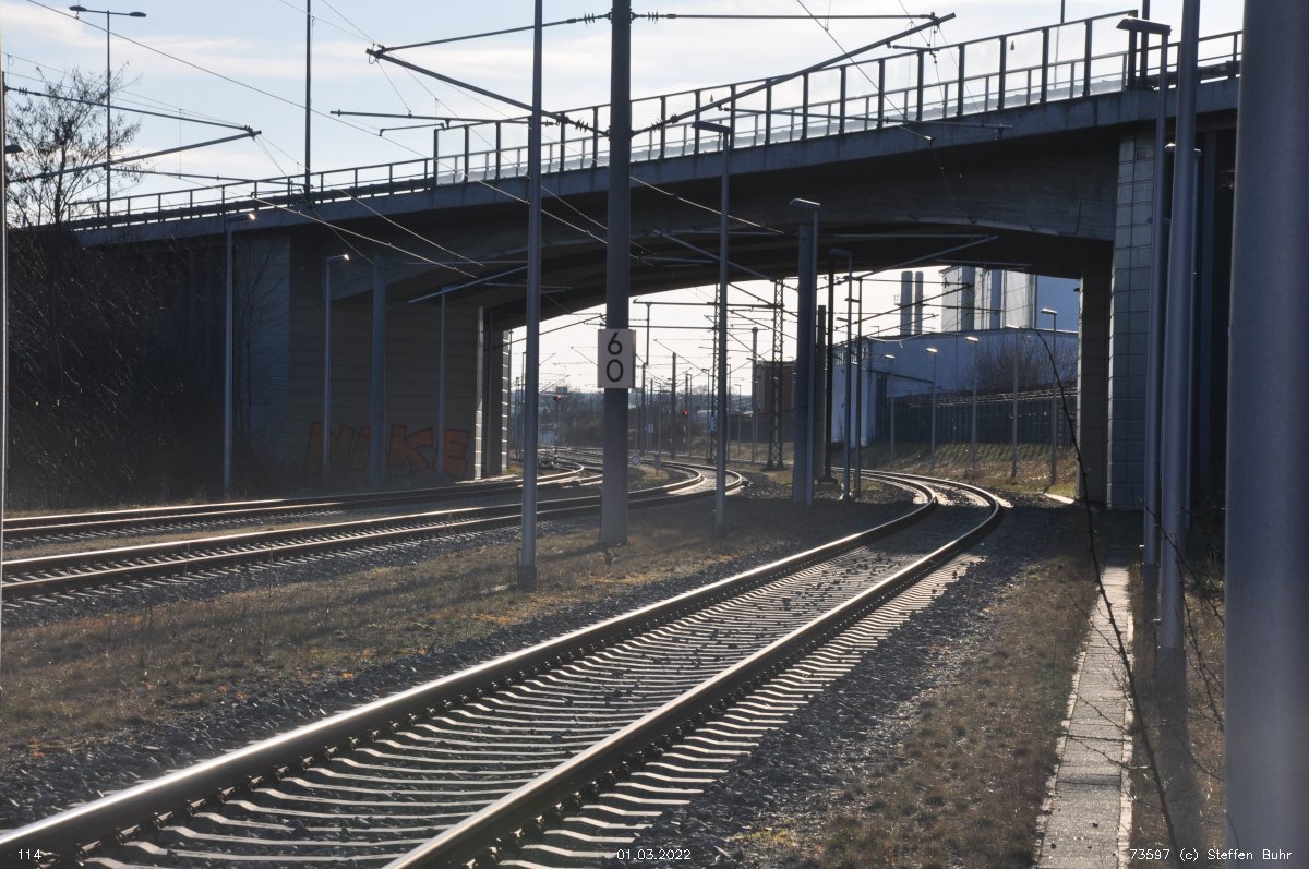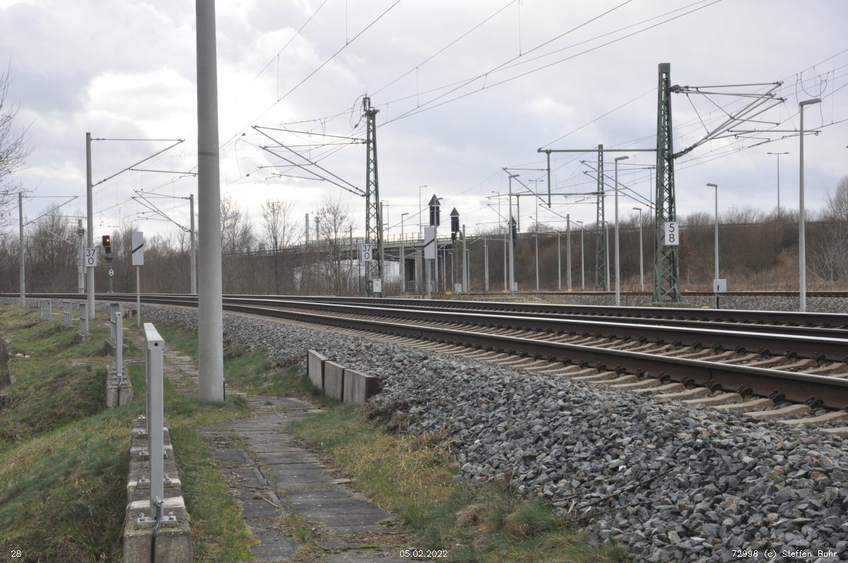 | Abzw Bohnsdorf West | 1,81 | km 40,70 der Strecke Abzw Glasower Damm Nord 26,77 - Abzw Selchow Süd 30,78 - Berlin Flughafen BBI 34,50 - Abzw Bohnsdorf Süd 42,07 (6151) |