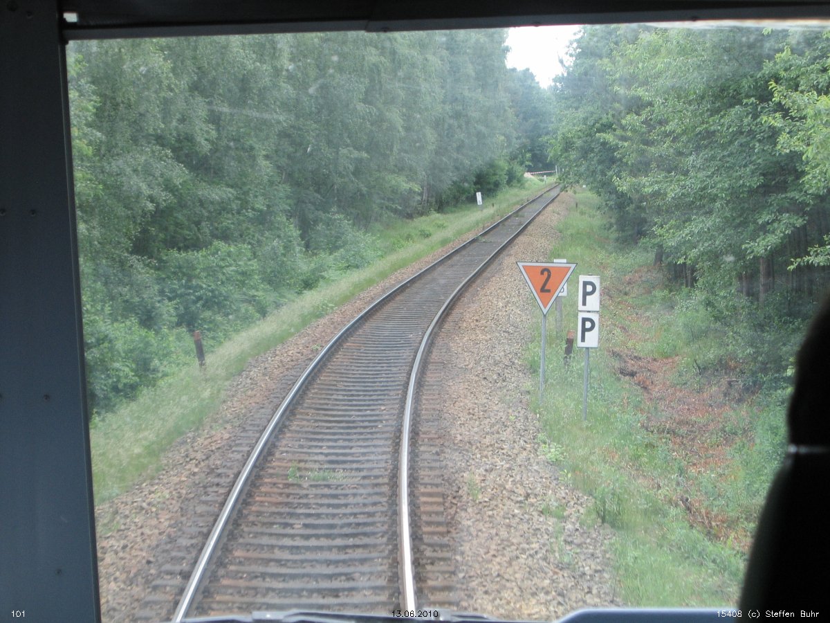 | Berlin-Grünau | -1,21 | km 13,43 der Strecke Berlin Görlitzer Bf 0,0 - Lübbenau (Spreewald) 85,61 - Cottbus 114,77 - Görlitz 208,45 (kommend)/207,90 (gehend) - Hagenwerder 217,42 - km 217,60 =( km 23,44 - Zittau 0,0) |