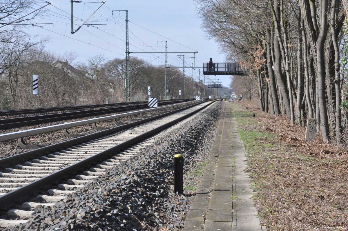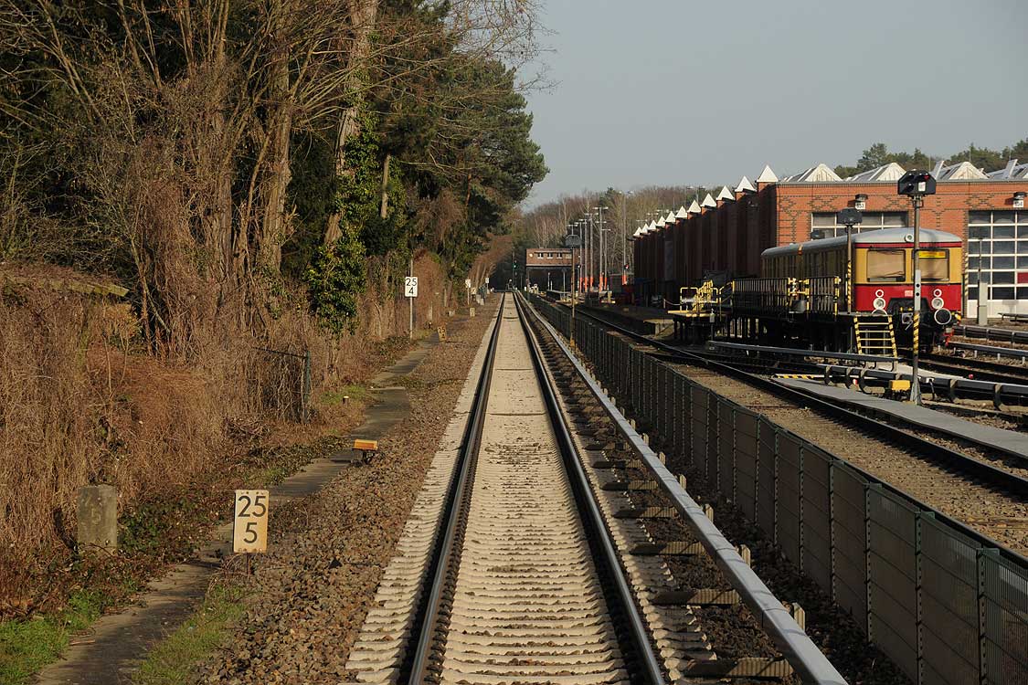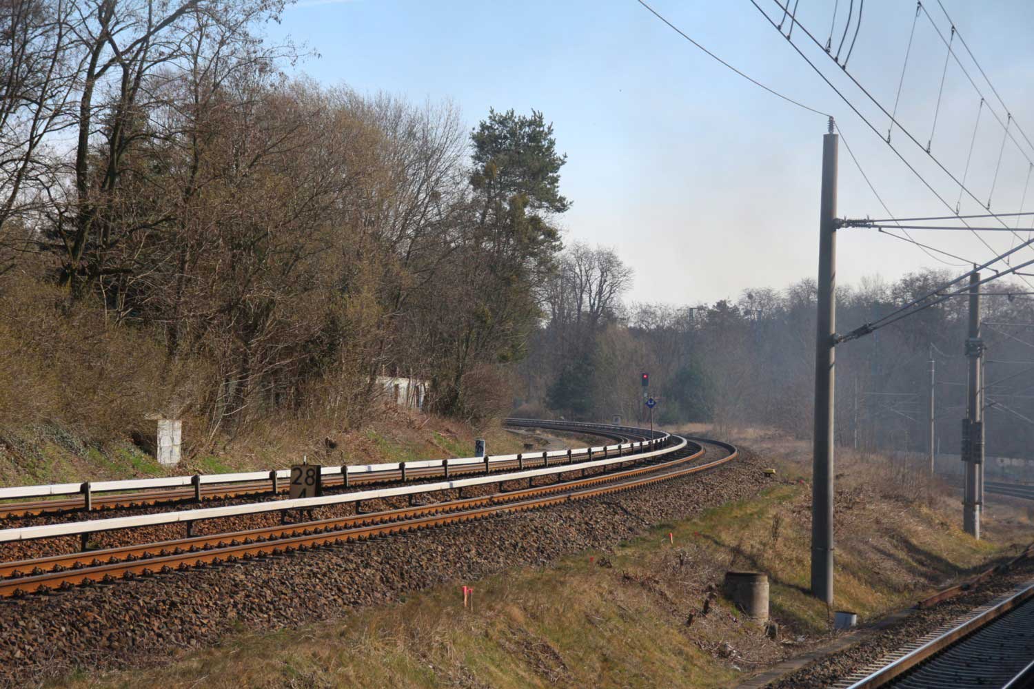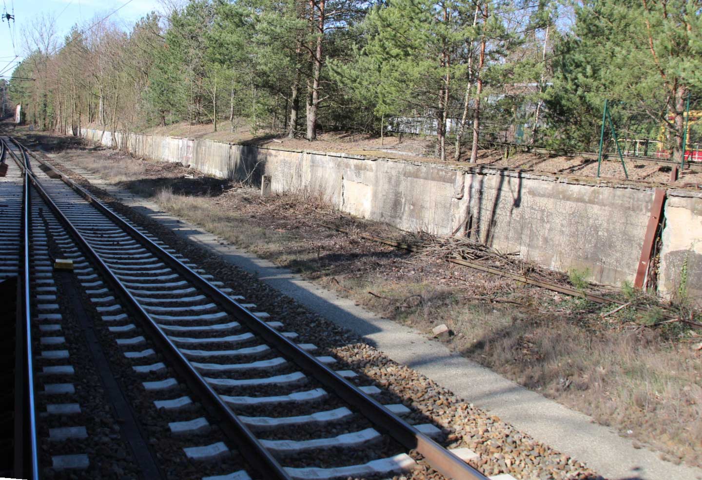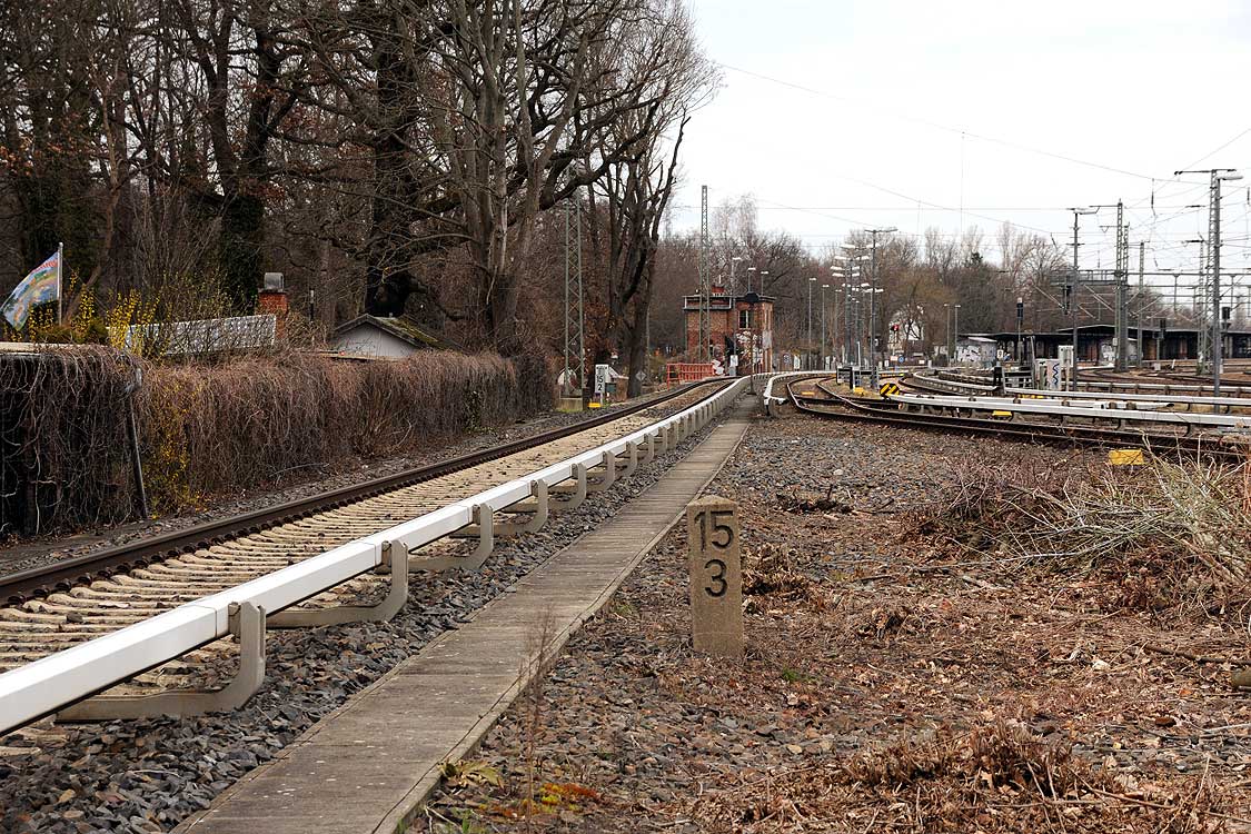 Vor dem Stellwerk Pdo ist noch der Stein km 25,3 zu erkennen.