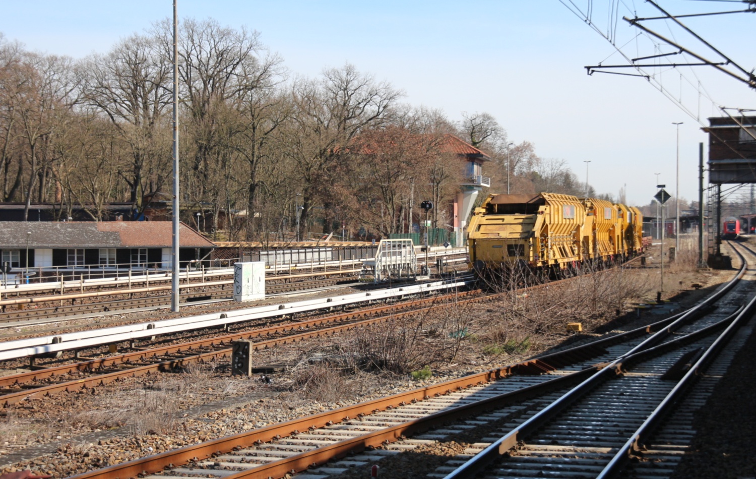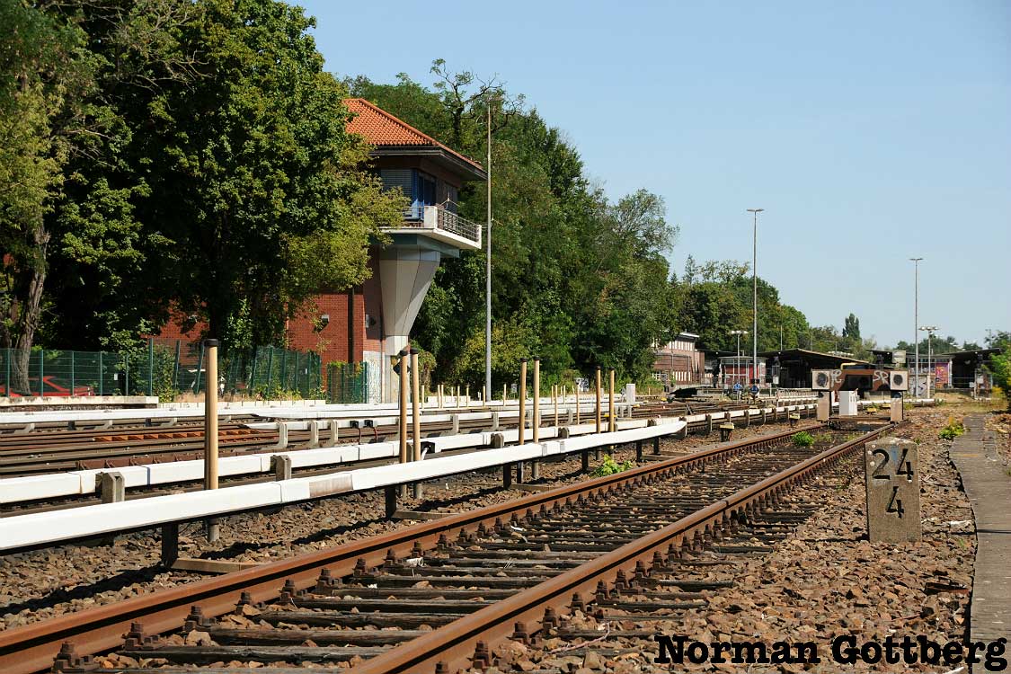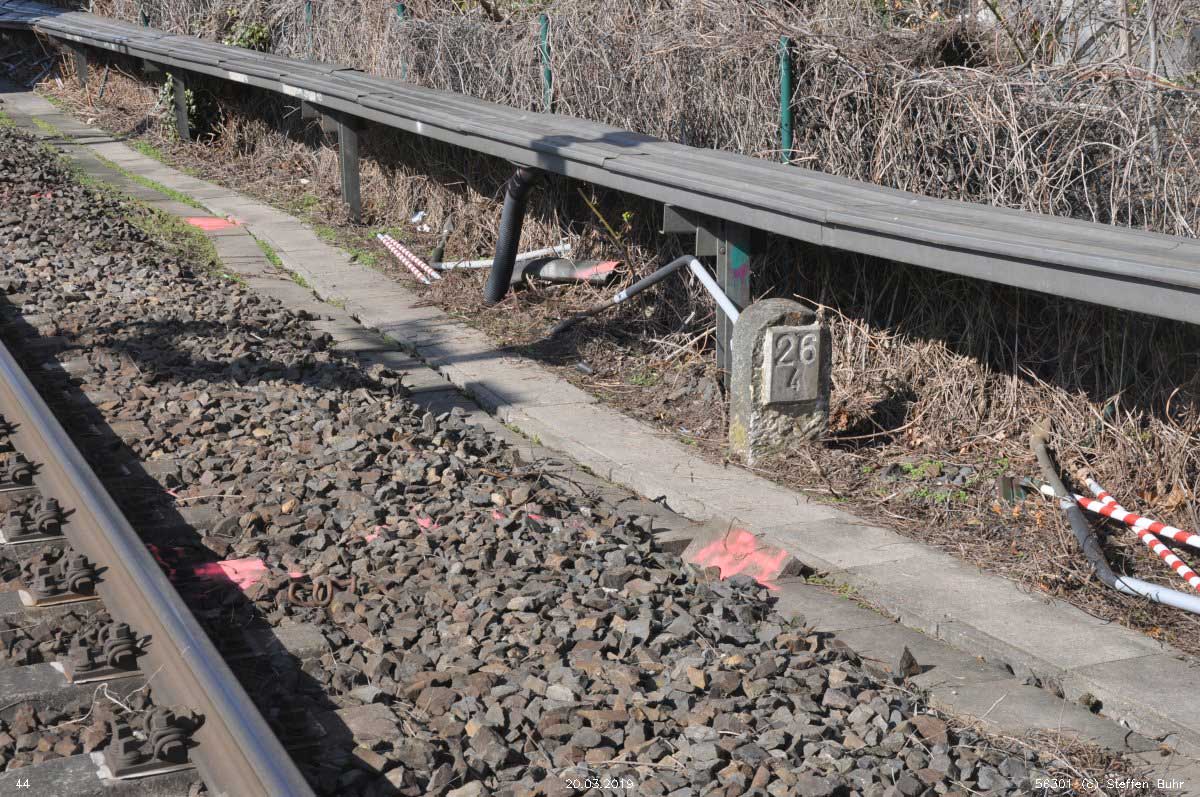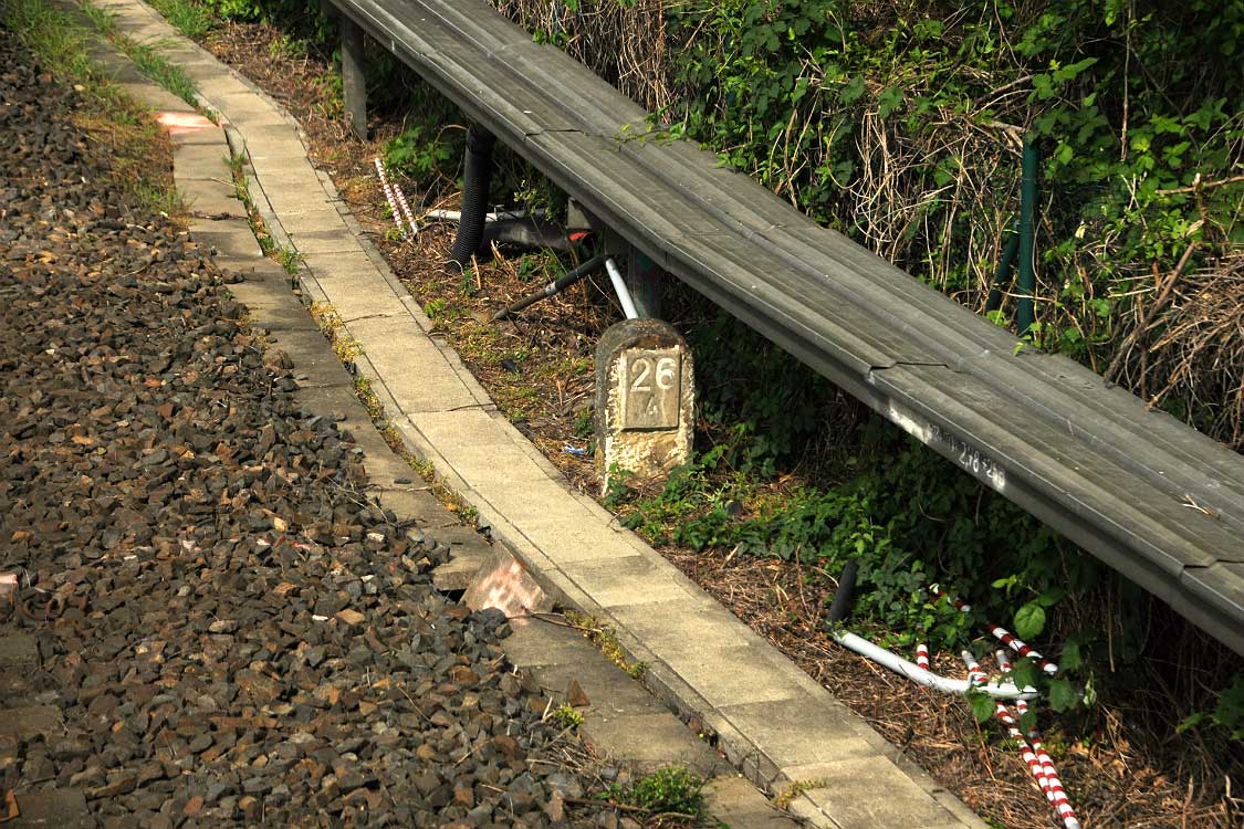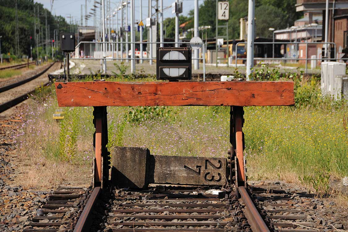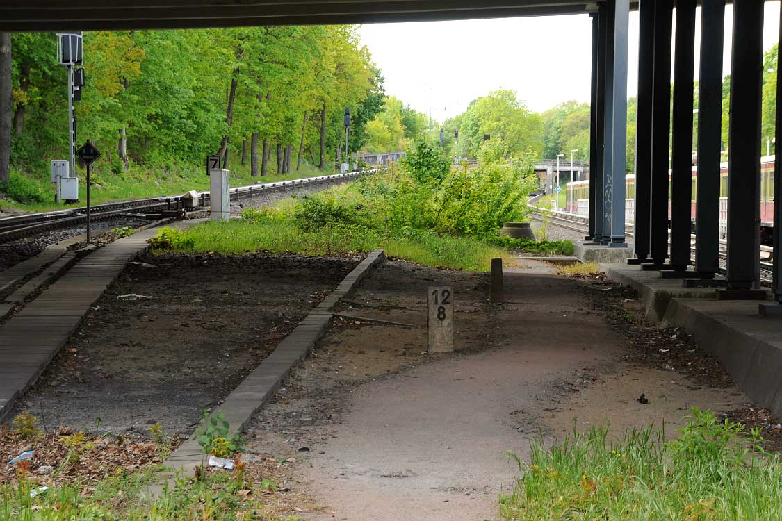 Vor dem Stellwerk Pdo ist noch der Stein km 25,3 zu erkennen.