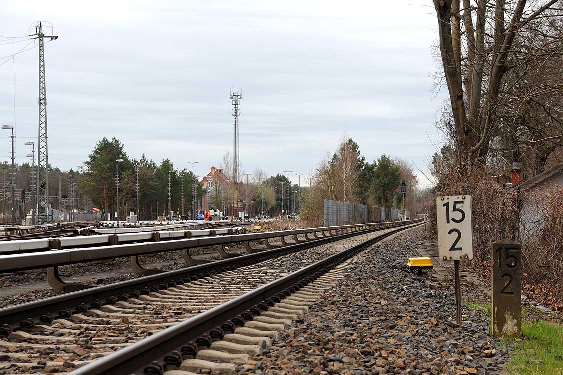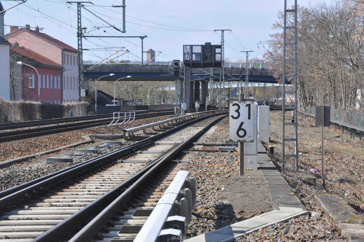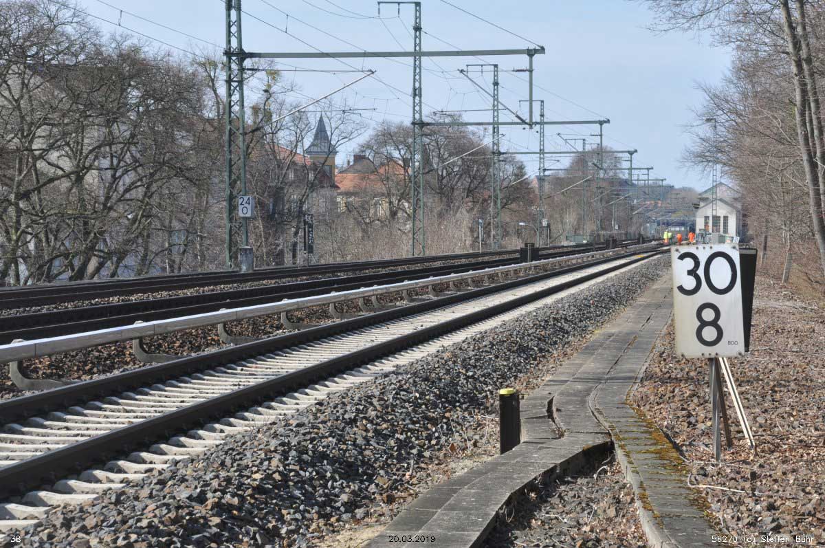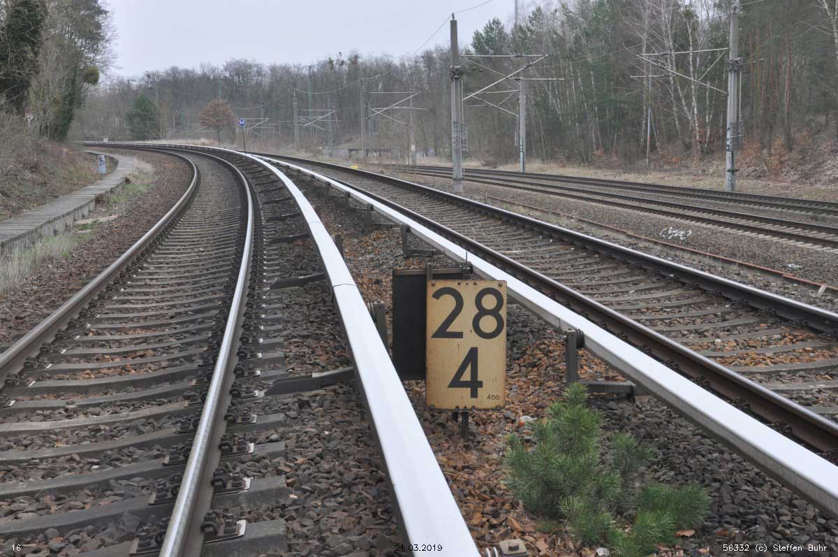 Pbf. Die Kilometrierung wurde bis nach Potsdam weitergeführt. Ebenso entstanden abzweigende Strecken mit weiterlaufender Kilometrieung. Die Kilometrierung umfasst die S-Bahngleise und die Fernbahngleise. |