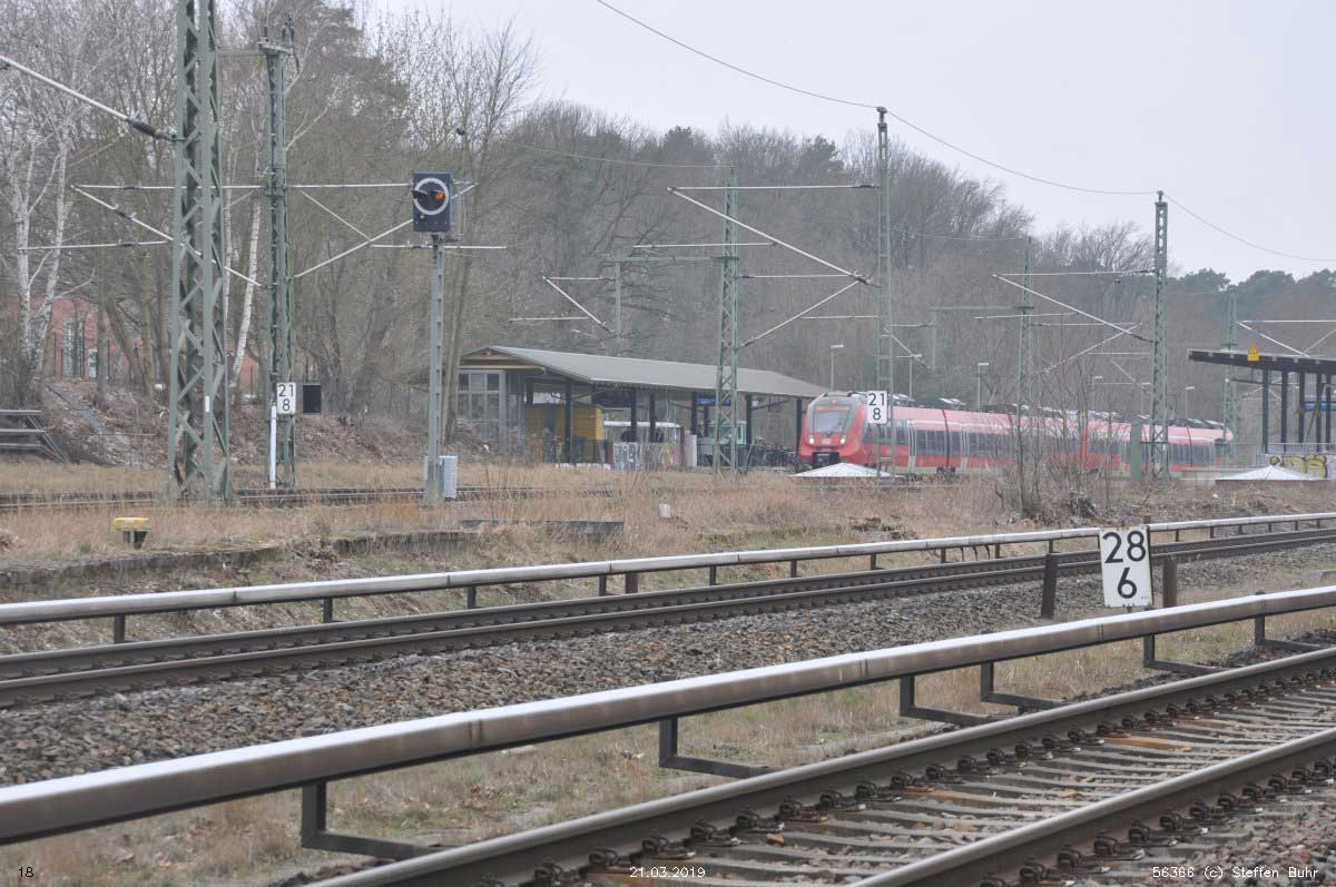 | Auswanderer Bf Ruhleben | 18,29 | km 10,90 der Strecke Berlin Lehrter Bf 0,0 - Stendal 105,11 - Oebisfelde 167,34 - Lehrte 239,39 | |
