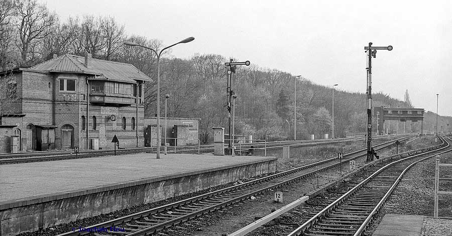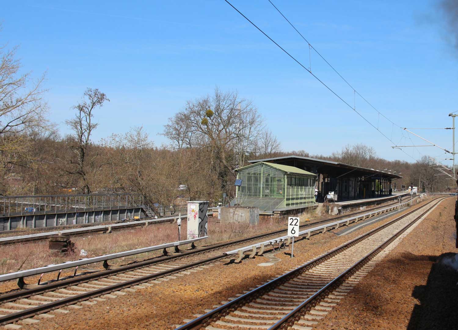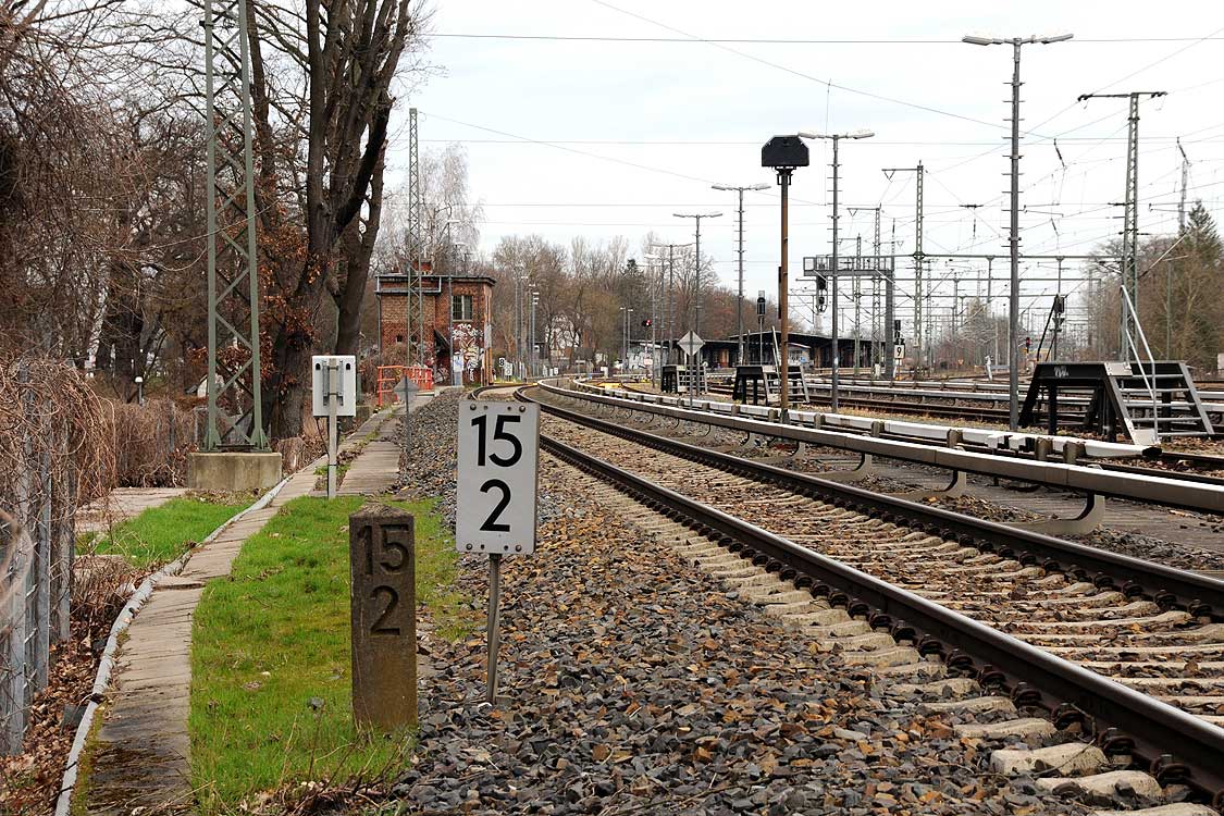 | Grunewald Pbf | 14,70 | km 3,32 der Strecke Charlottenburg 0,0 (später: -0,12) - Wiesenburg 77,83 - Güsten 147,34 - Blankenheim Trennungsbf 188,06 | |