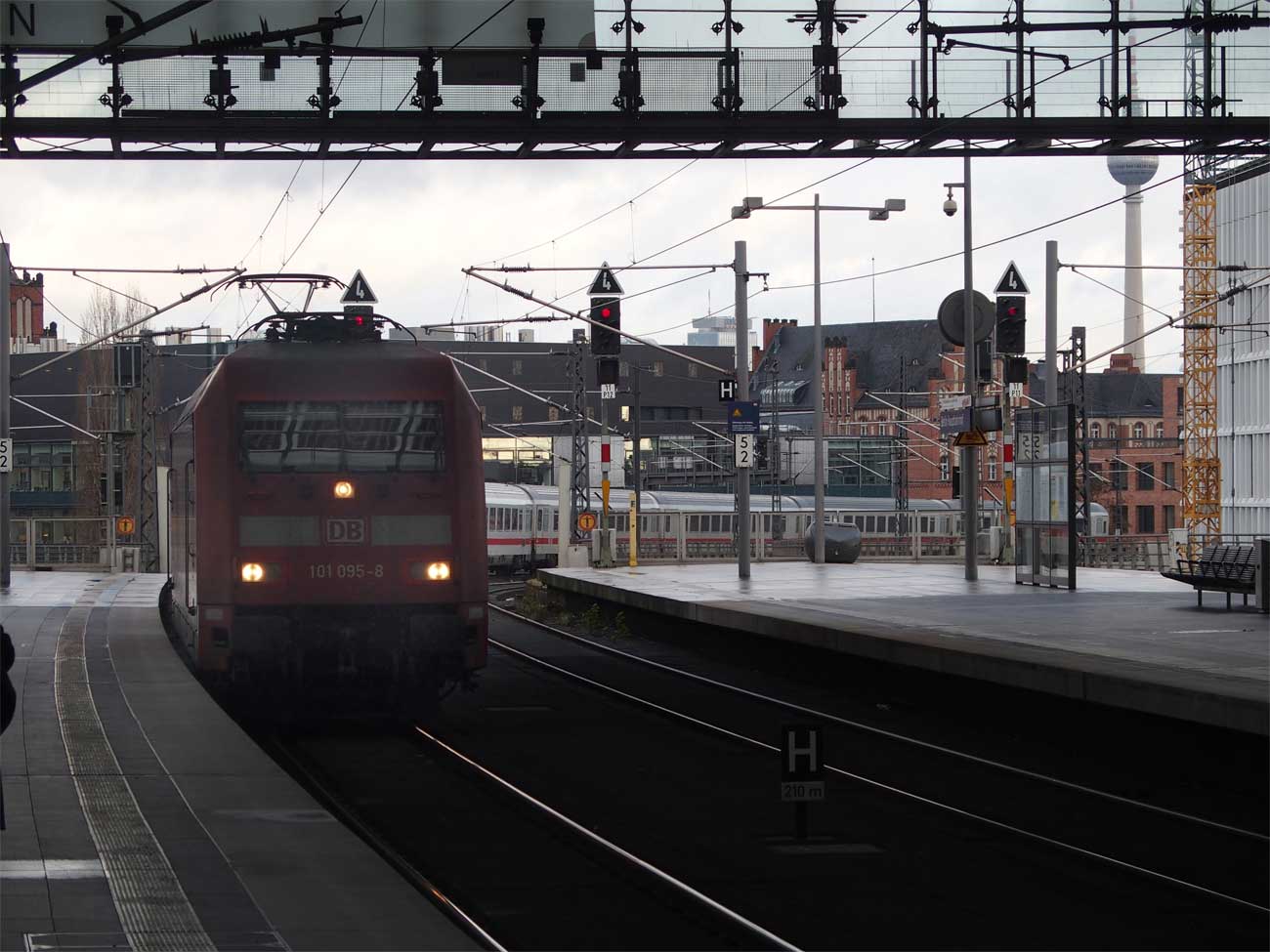 km 0,4 (Fernbahn) in Berlin Ostbahnhof - Blick Richtung Westkreuz