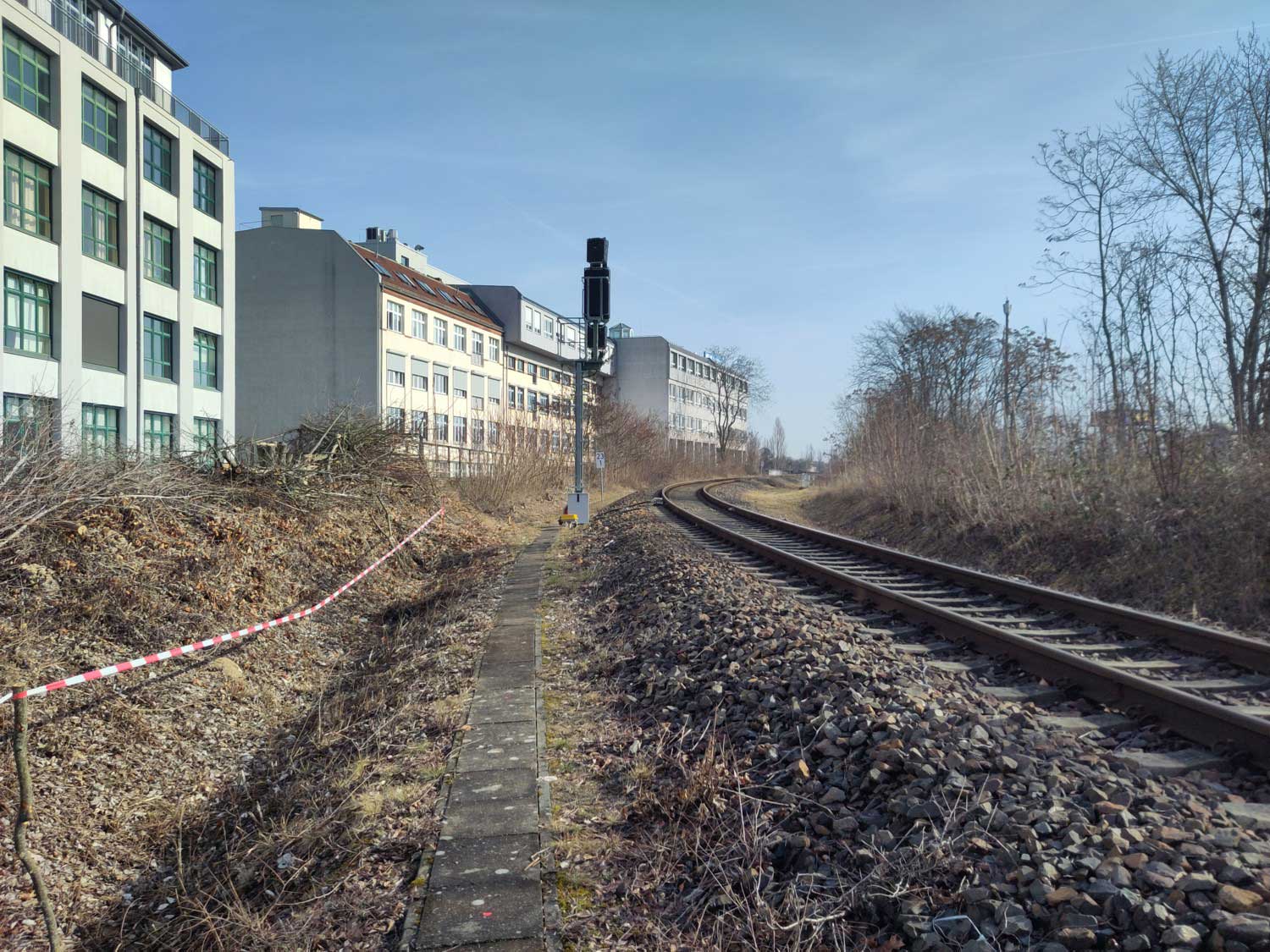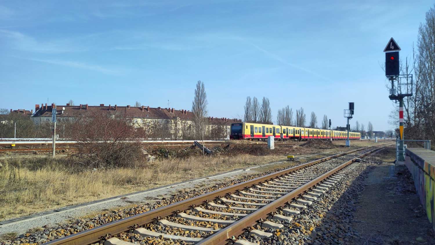 Rechts die S-Bahnstrecke