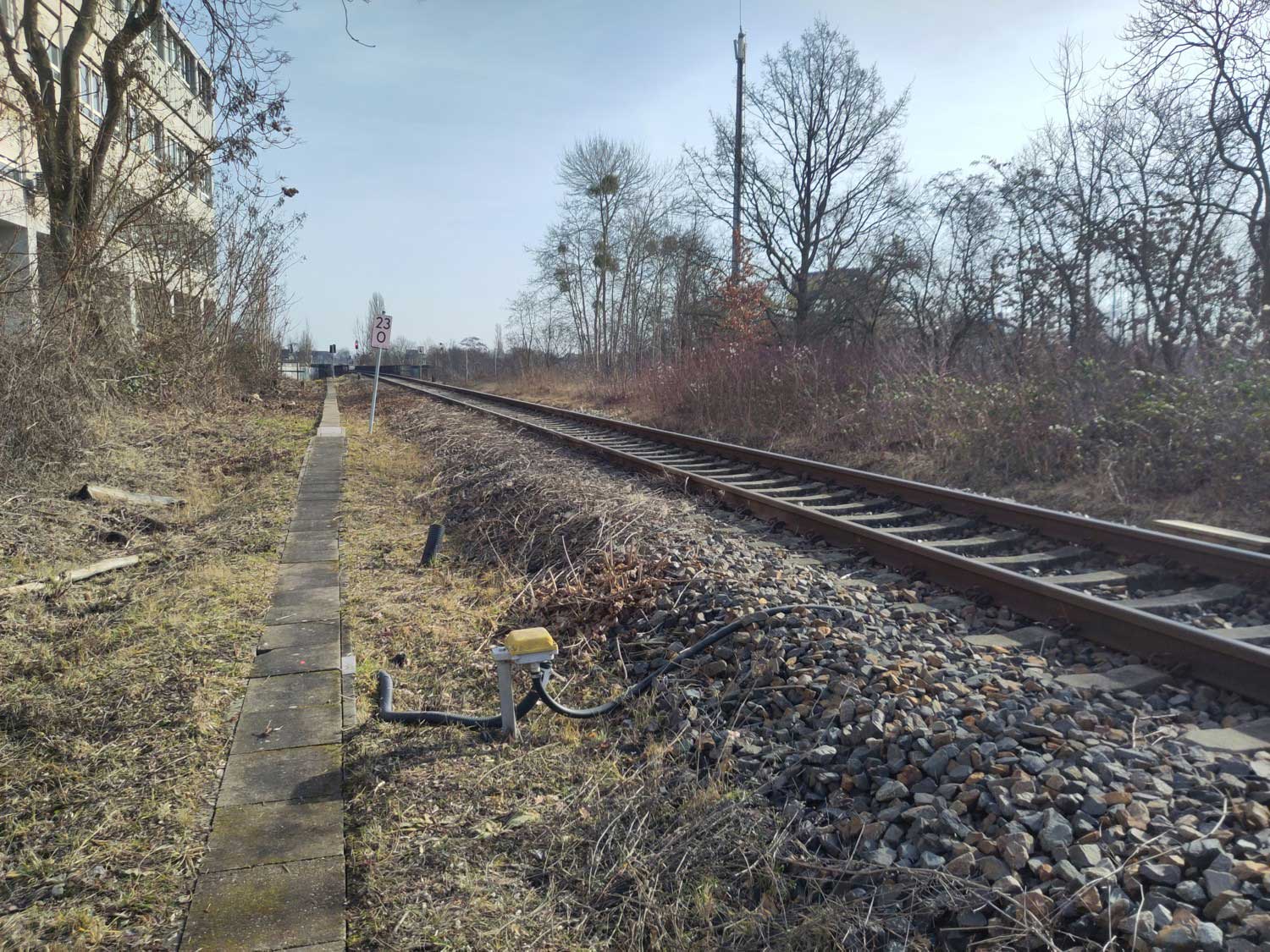 bei km 22,8 (rechts) in Berlin-Tempelhof - Blick Richtung Streckenanfang