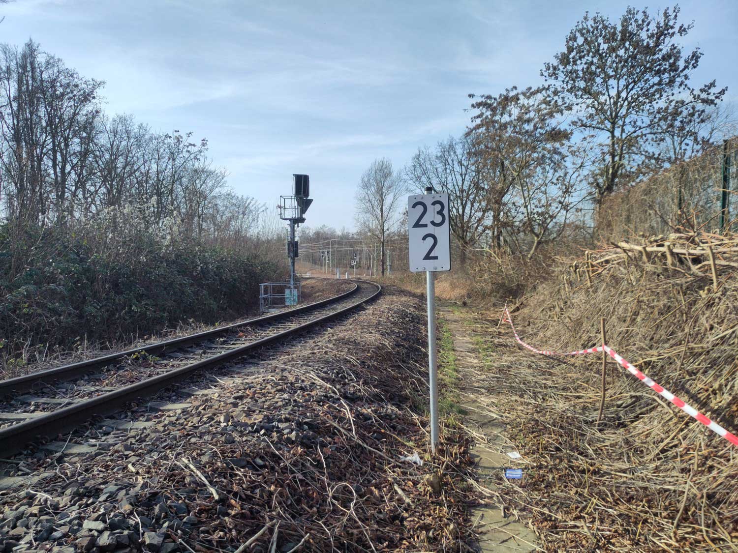 km 22,6 (Tafel links) in Berlin-Tempelhof - Blick Richtung Abzw Berlin-Mariendorf