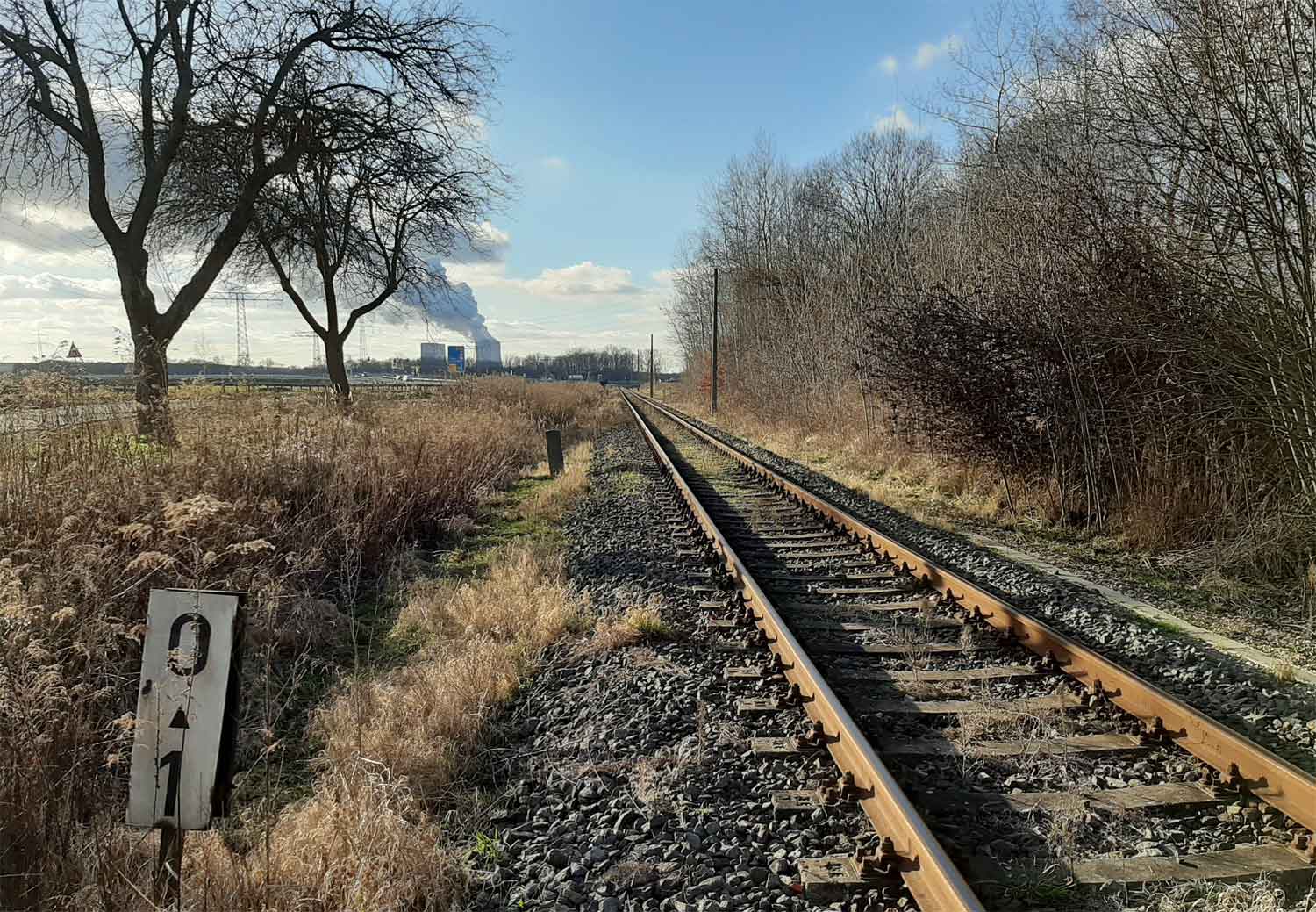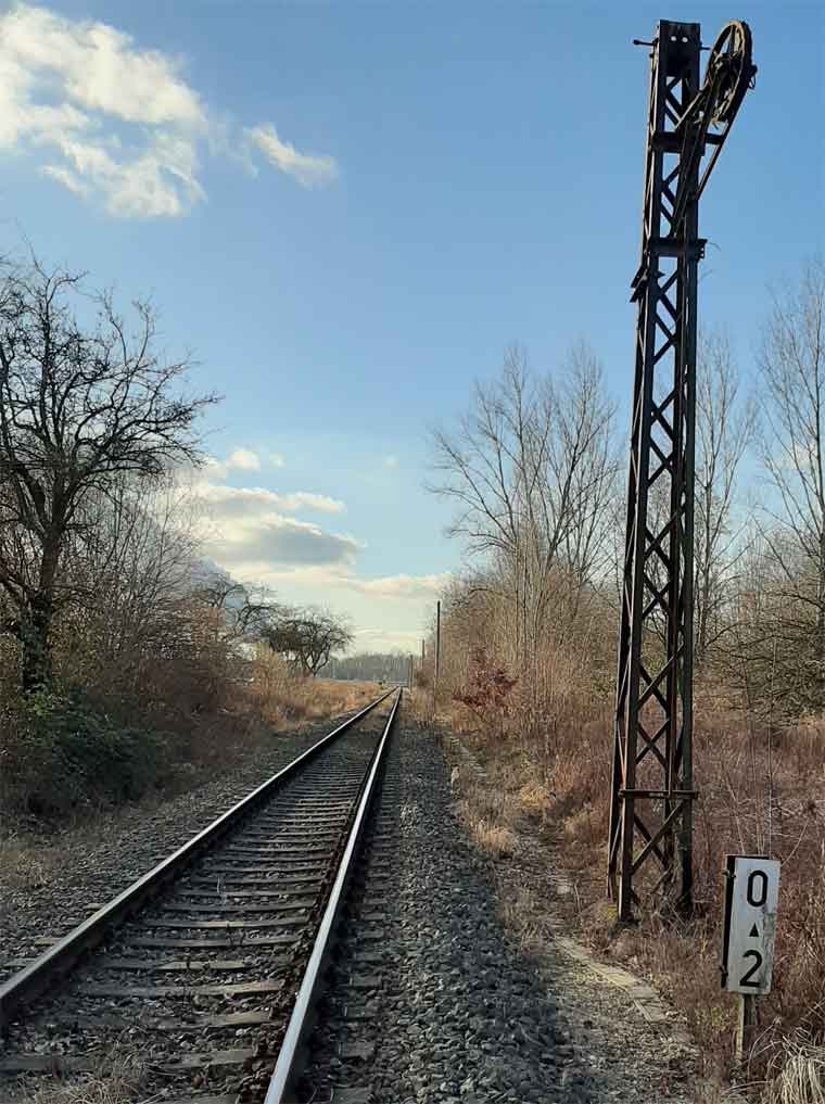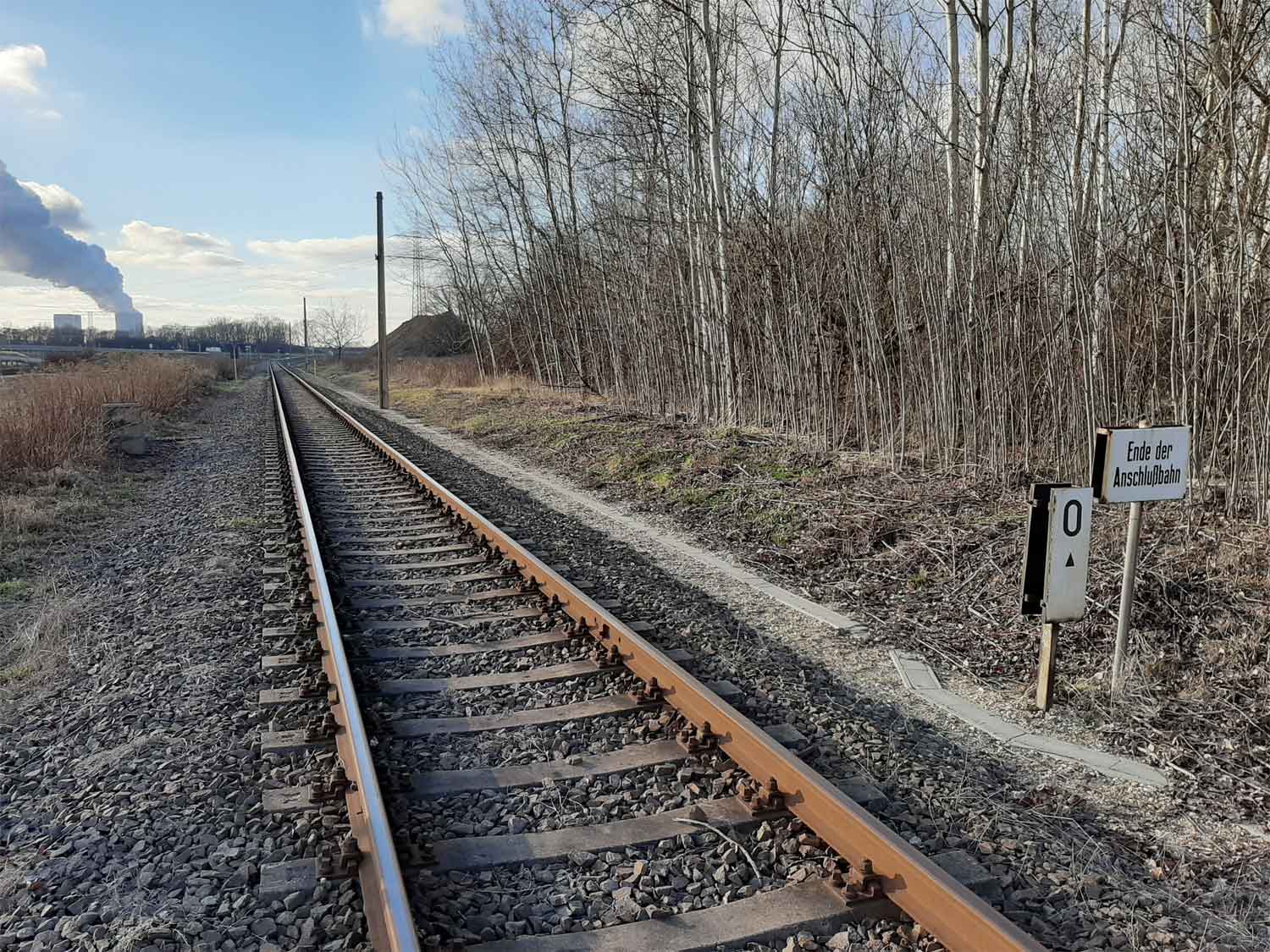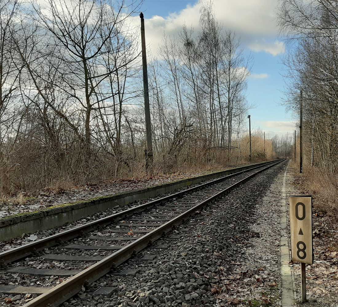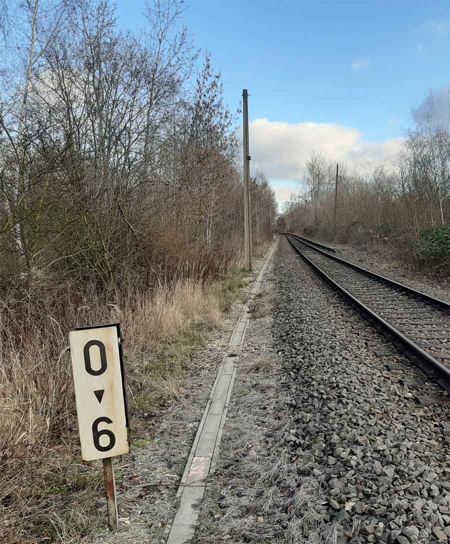 km 0,0 der Anschlussbahn - Blick Richtung