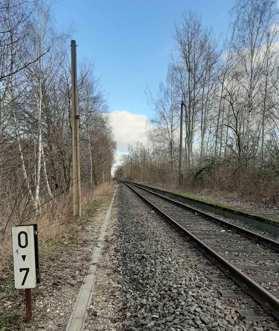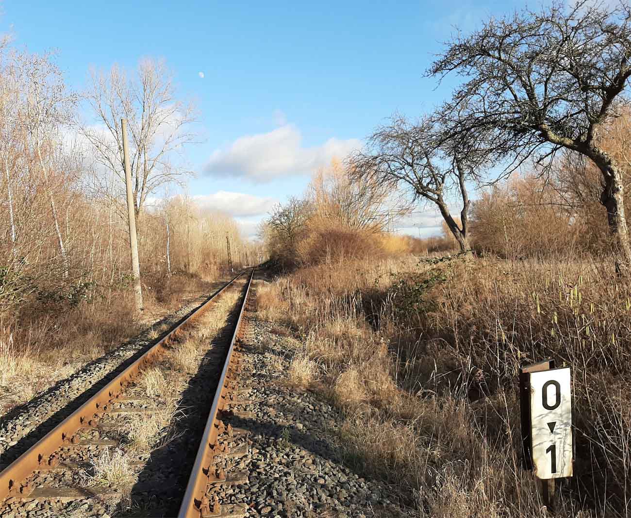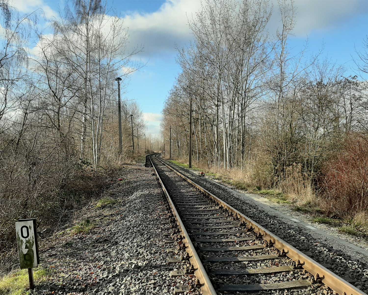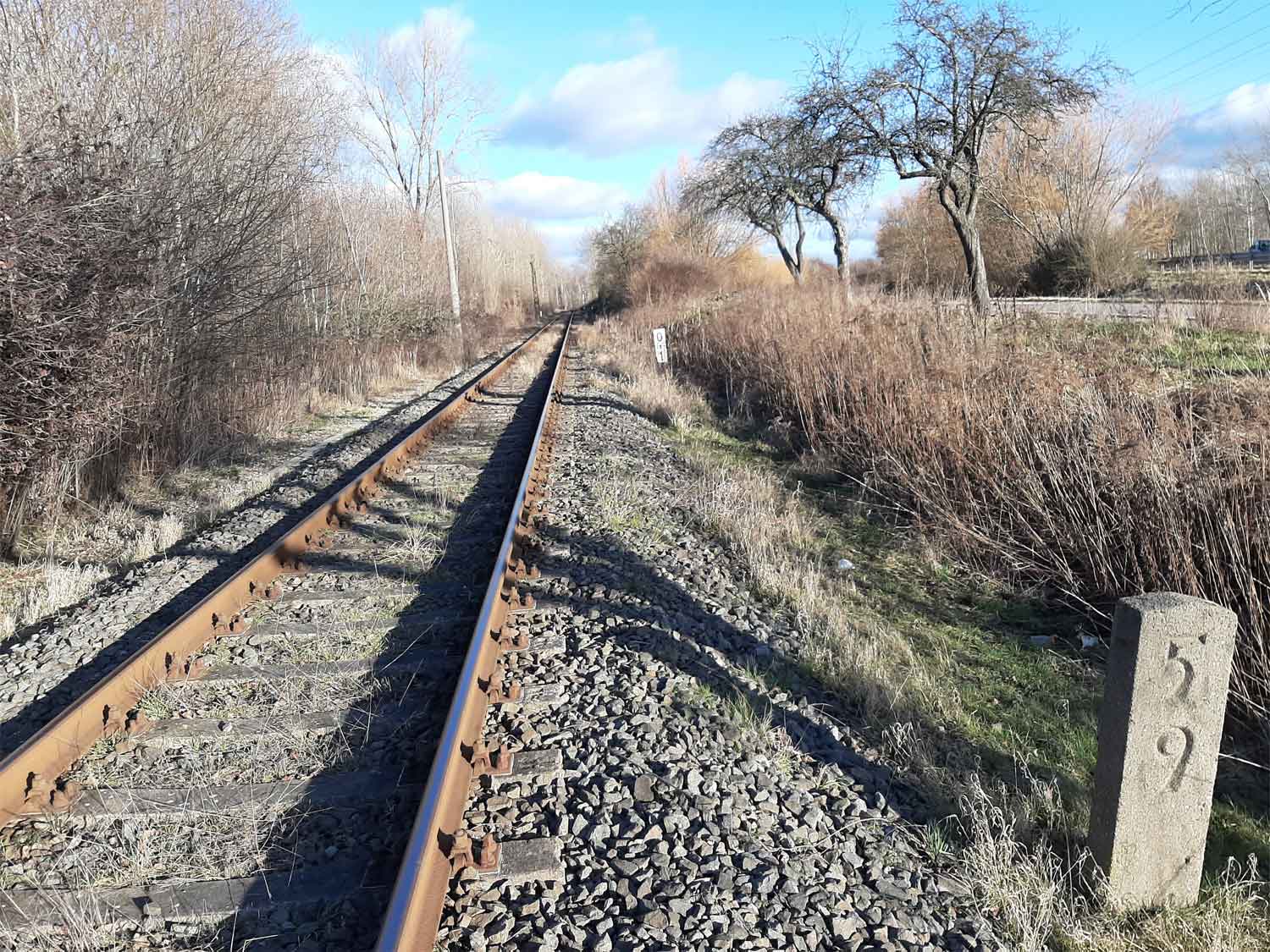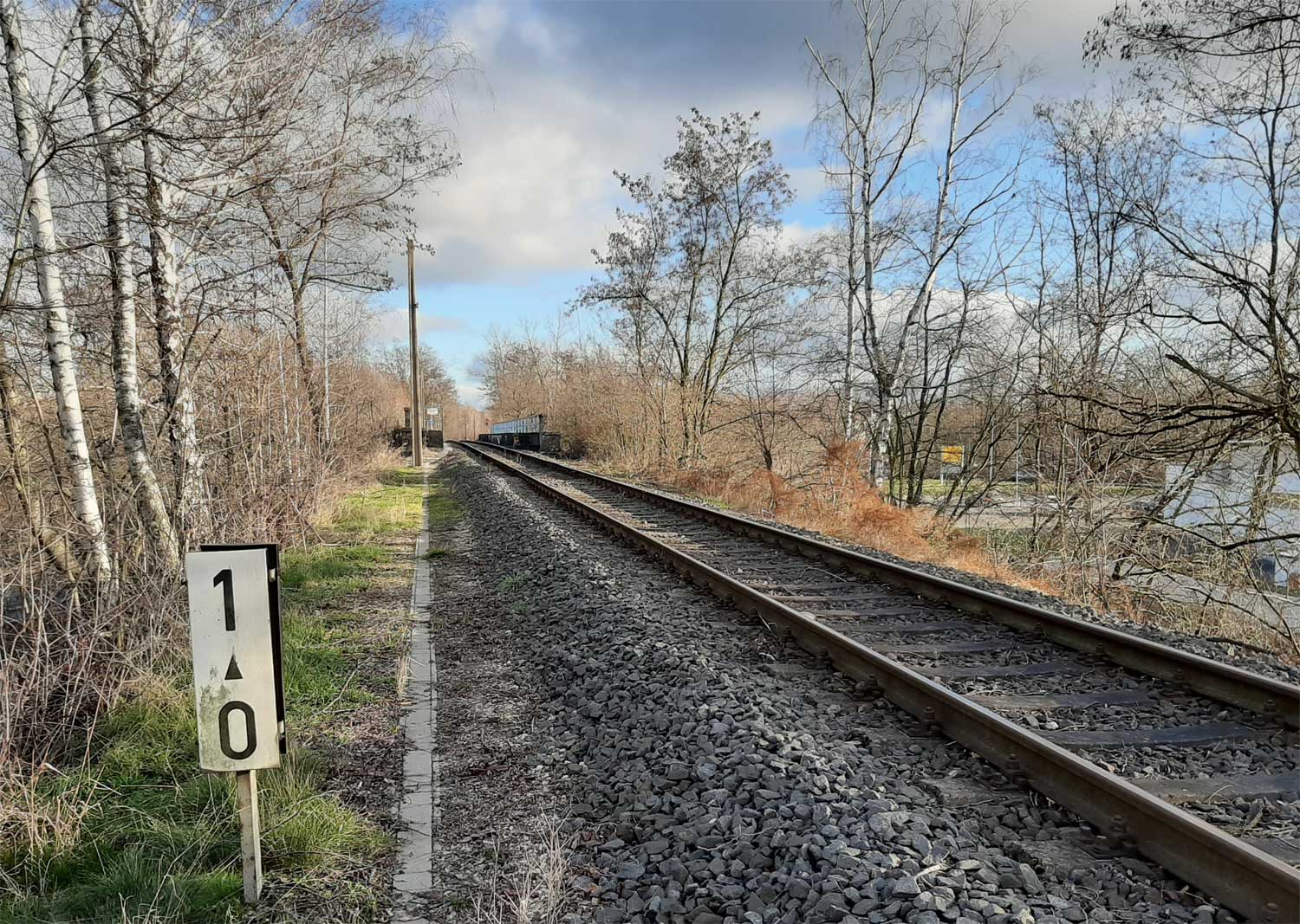 km 0,0 der Anschlussbahn - Blick Richtung