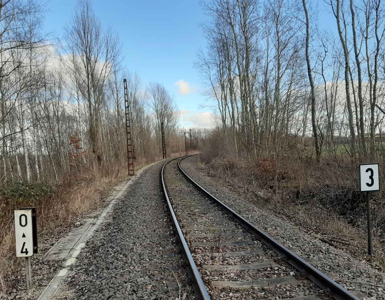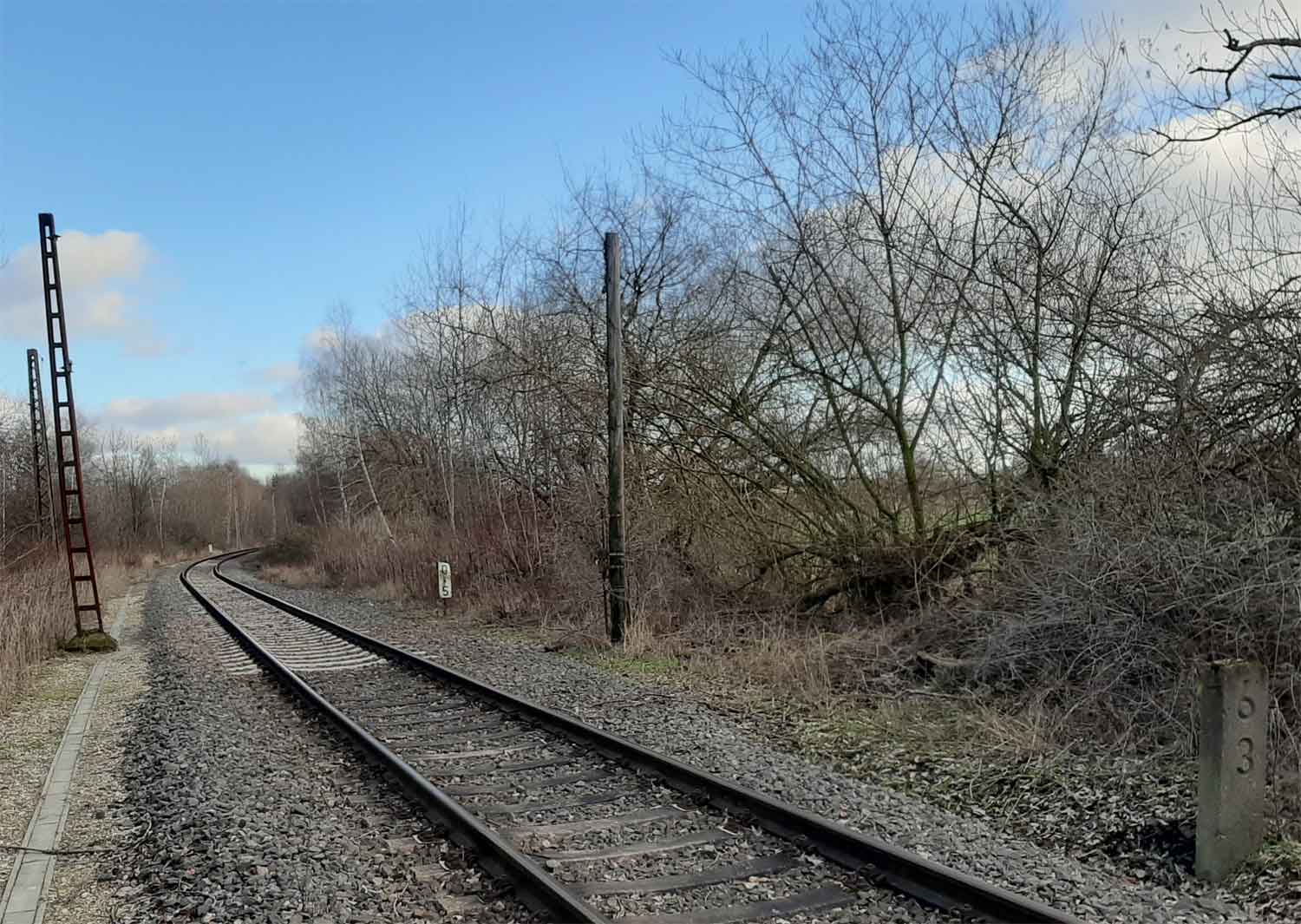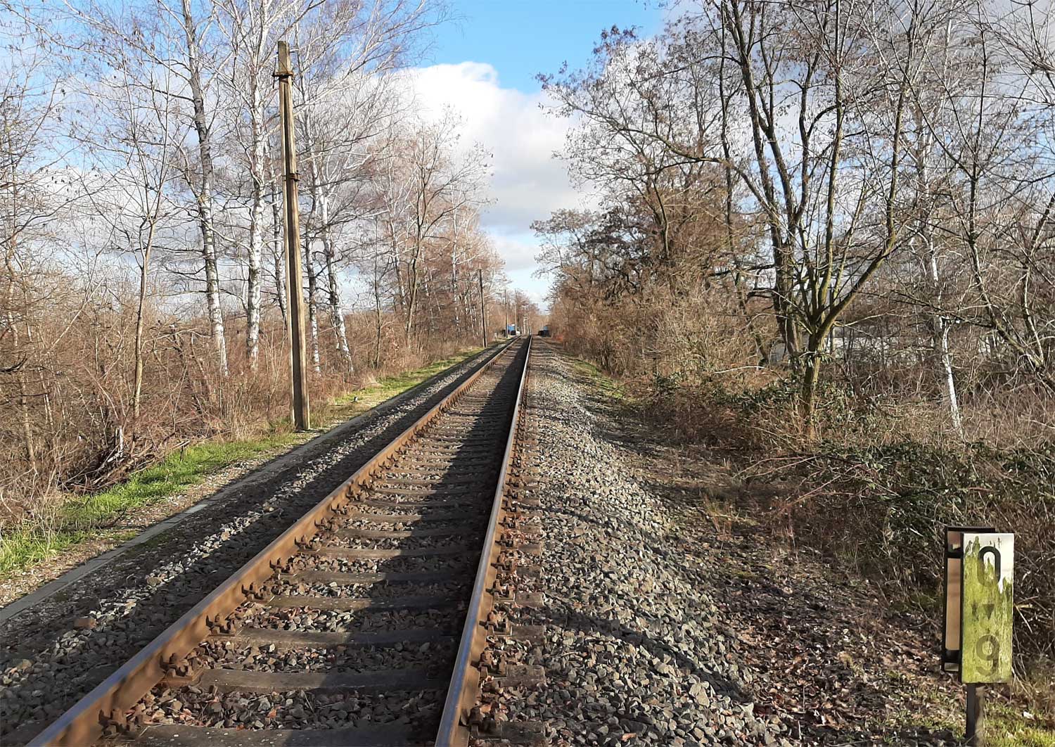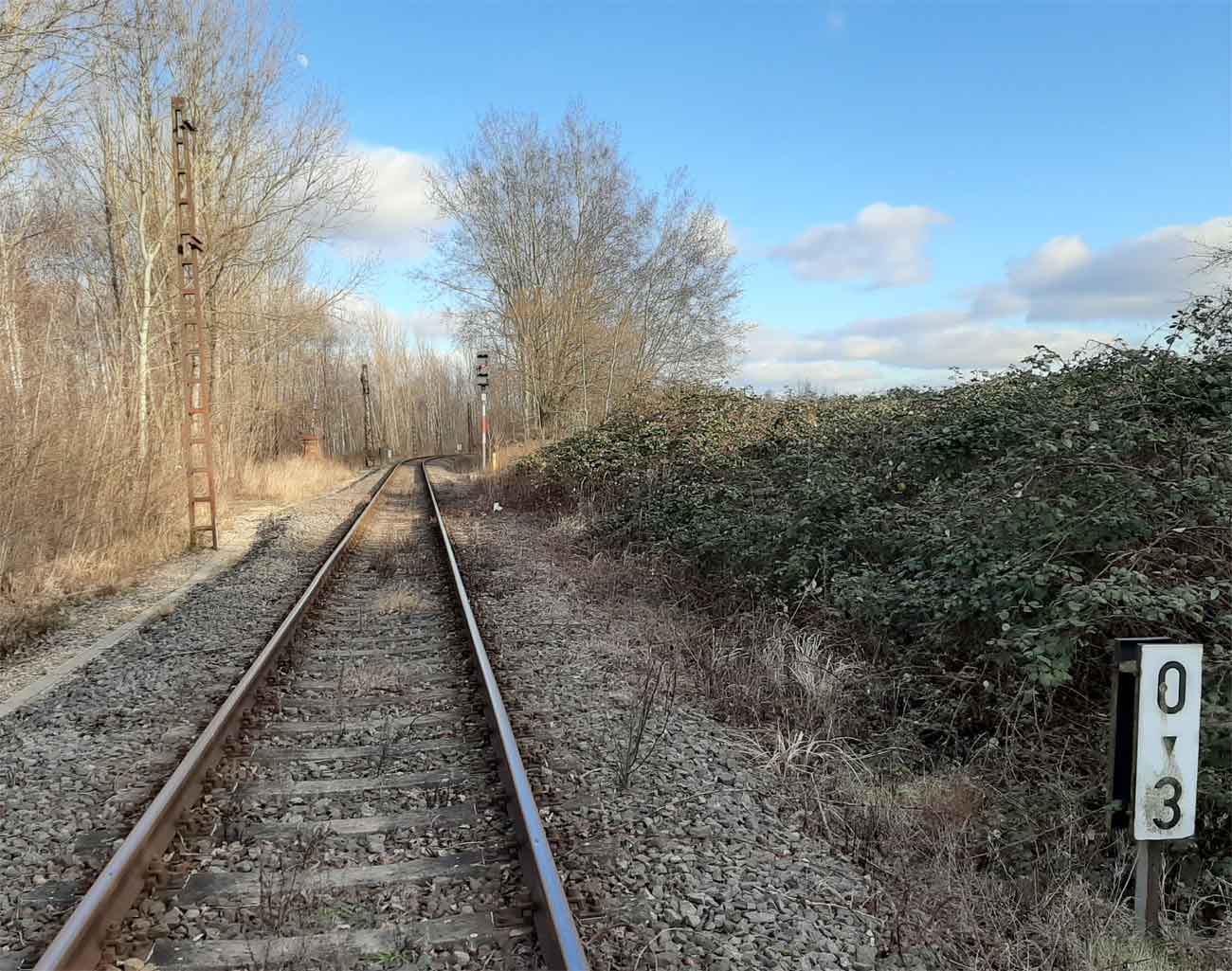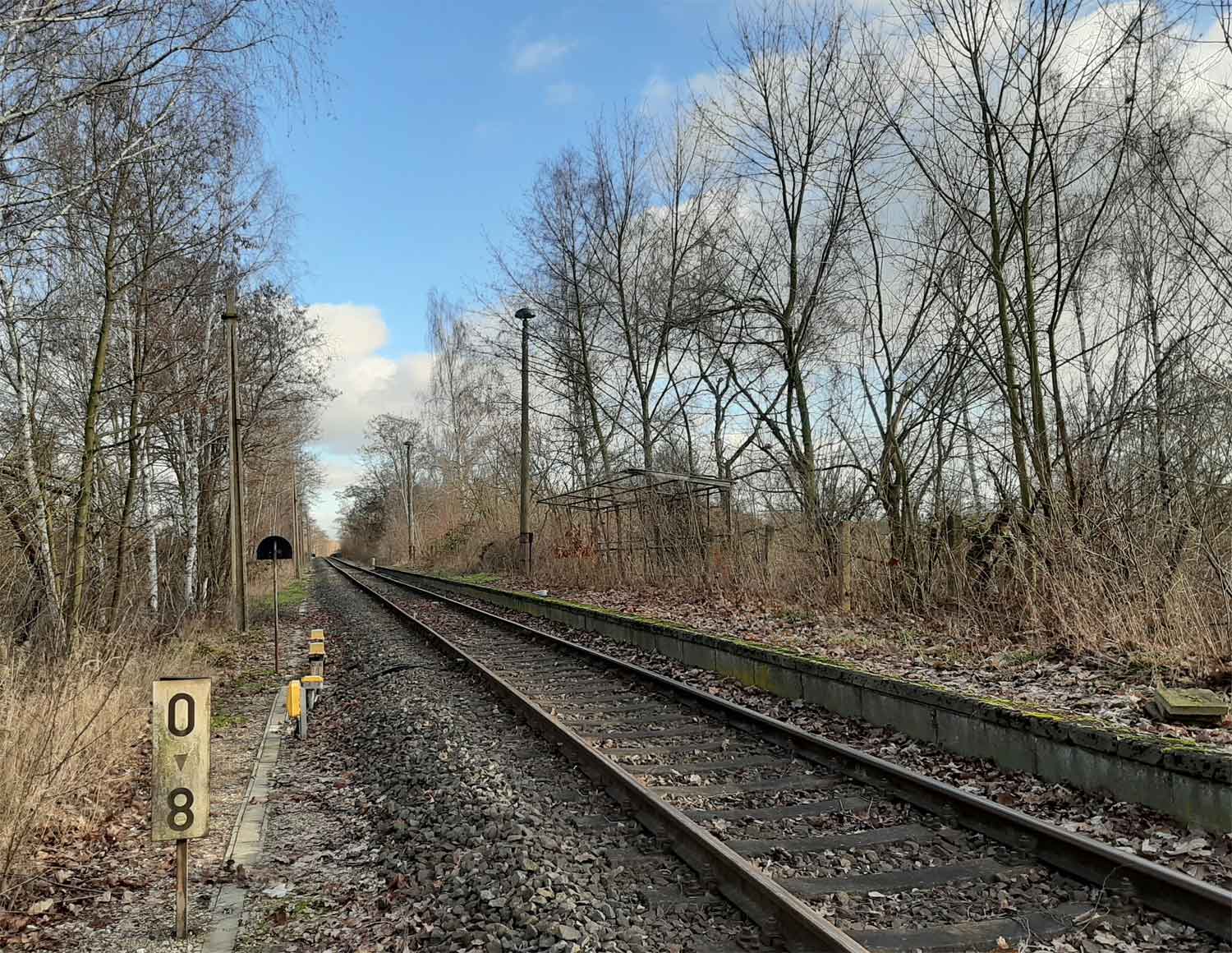 km 0,0 der Anschlussbahn - Blick Richtung