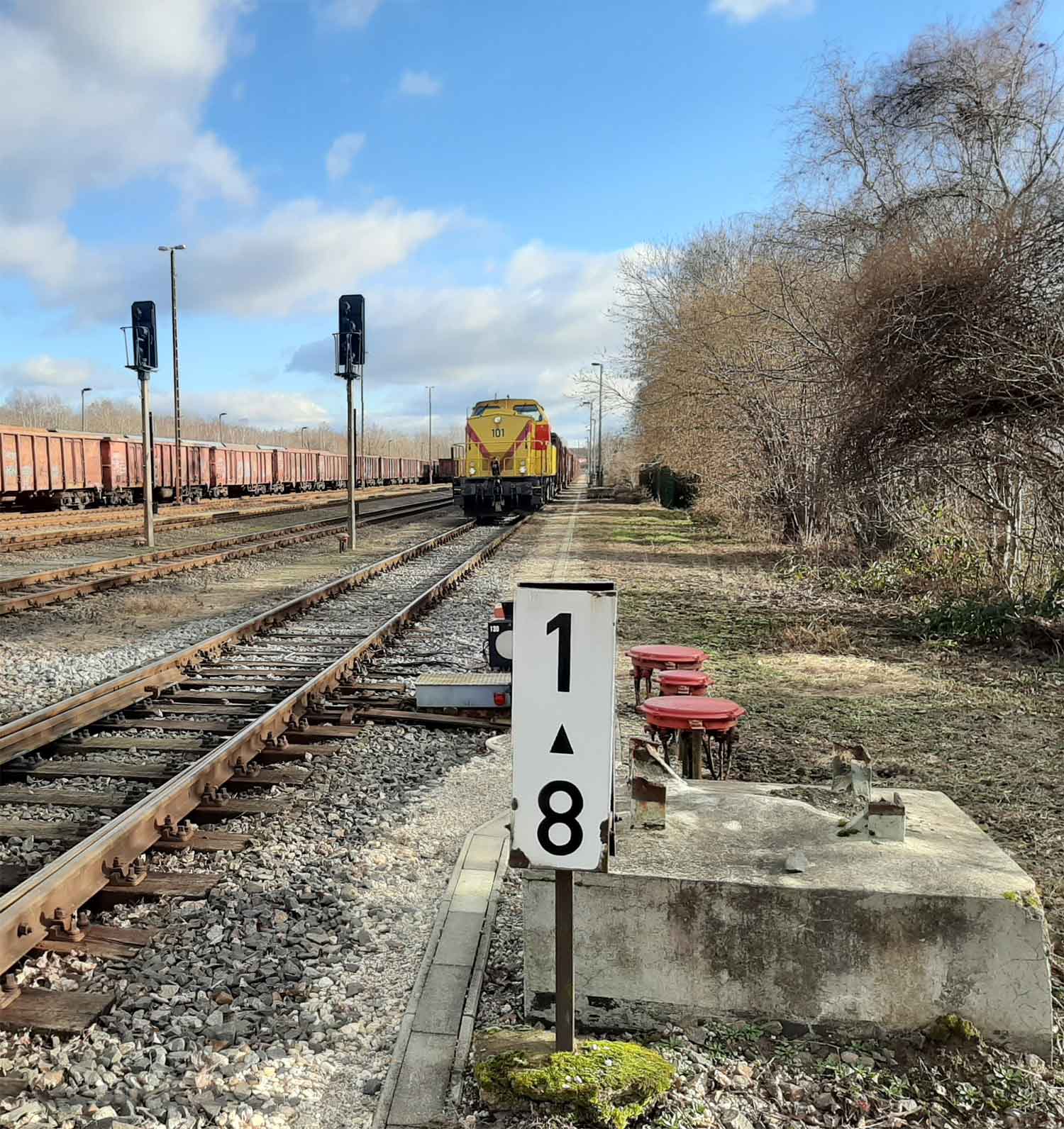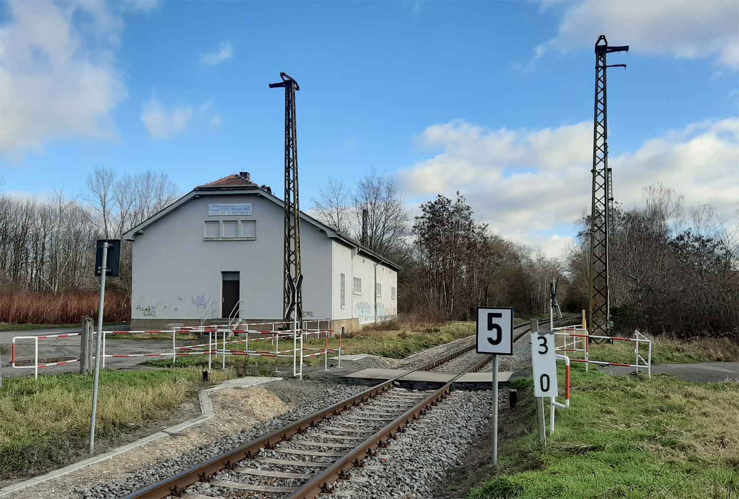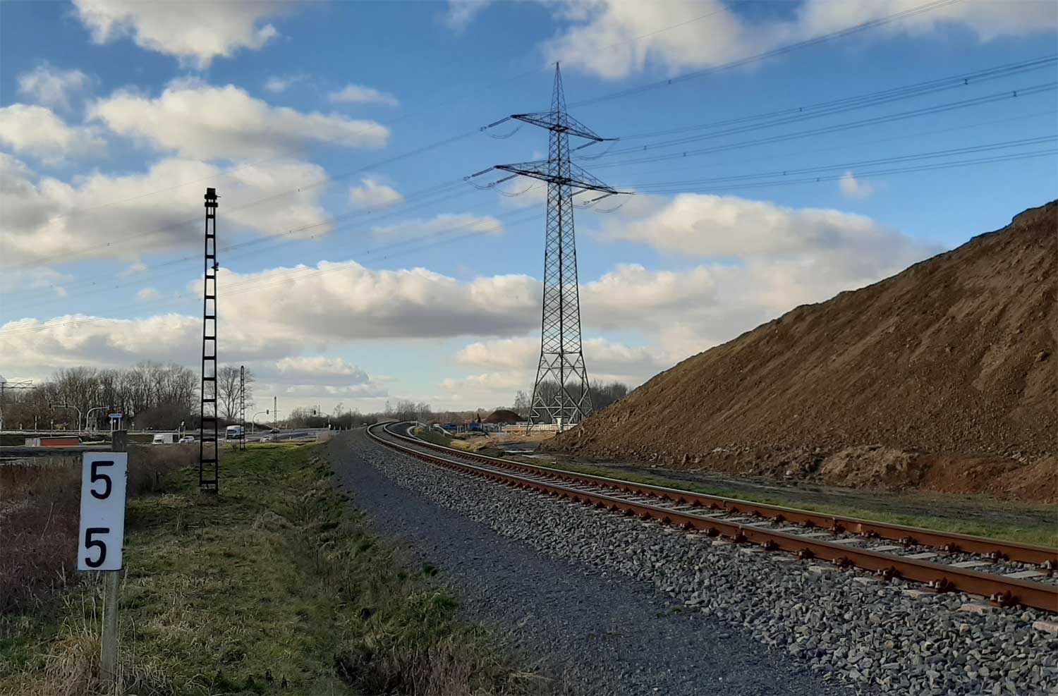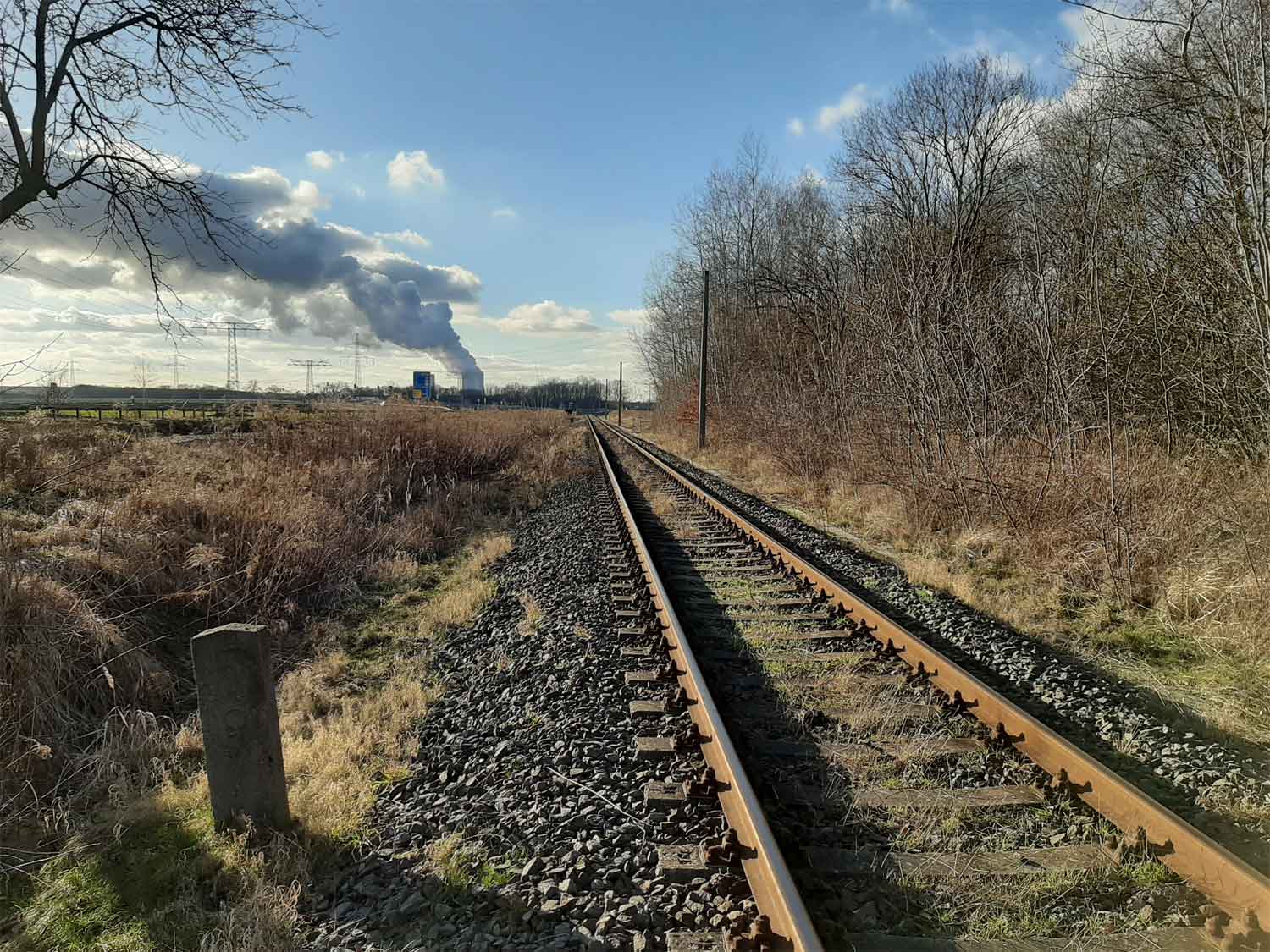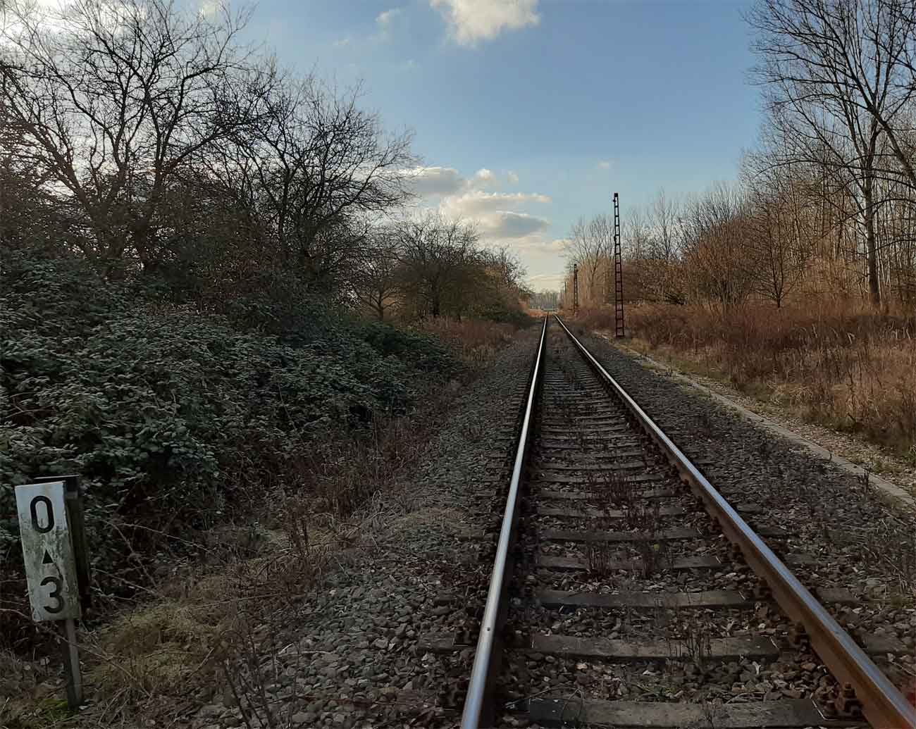 km 0,0 der Anschlussbahn - Blick Richtung