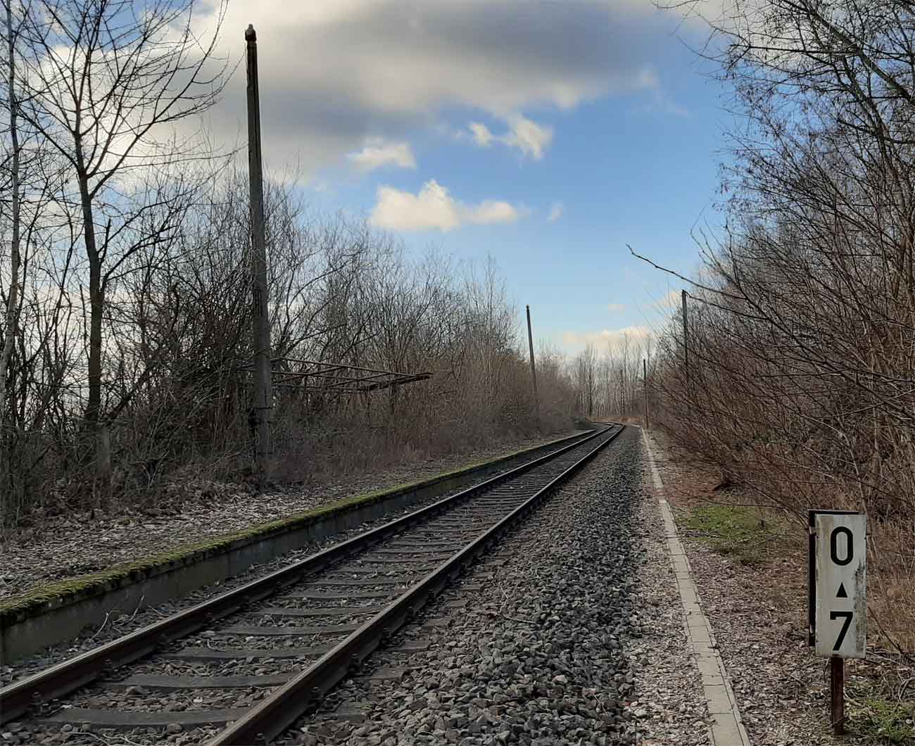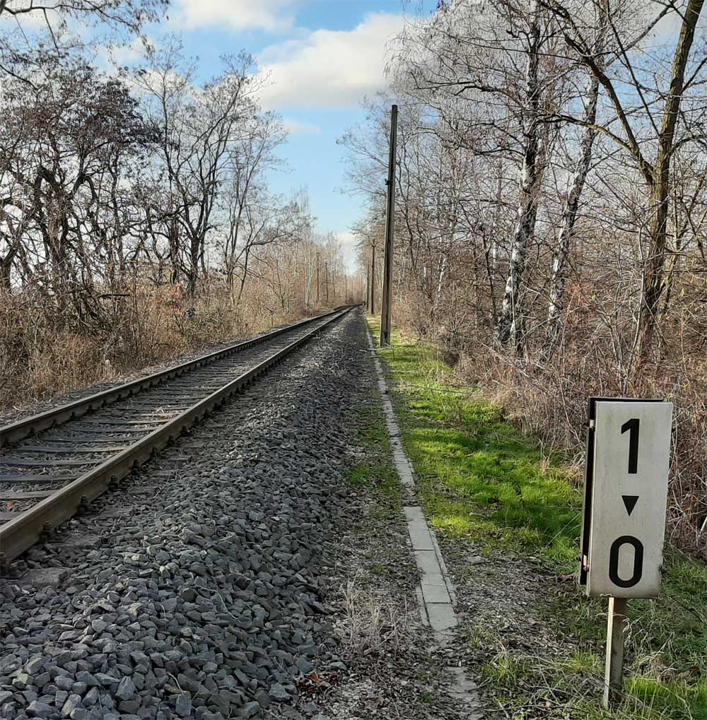 km 0,0 der Anschlussbahn - Blick Richtung Espenhain