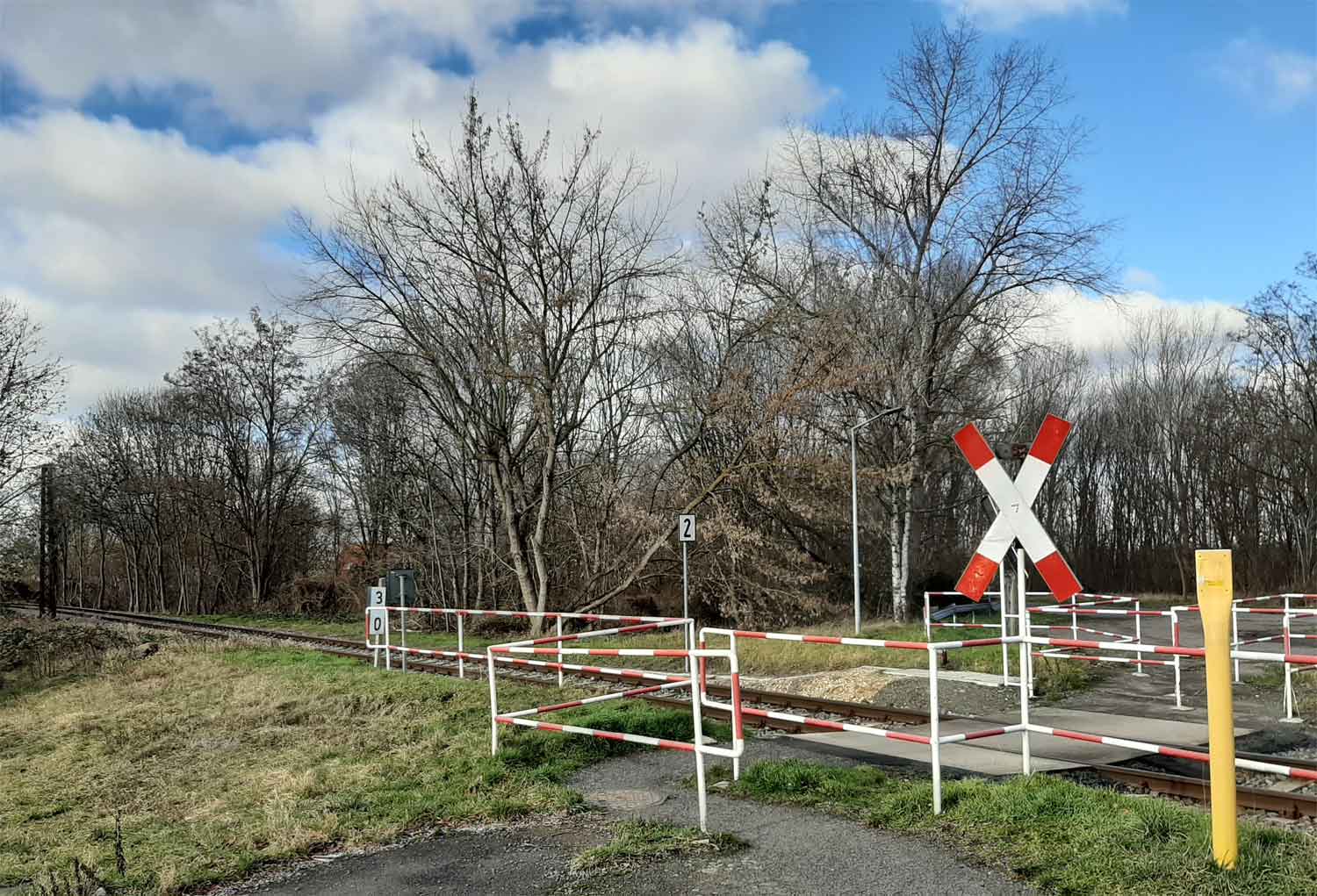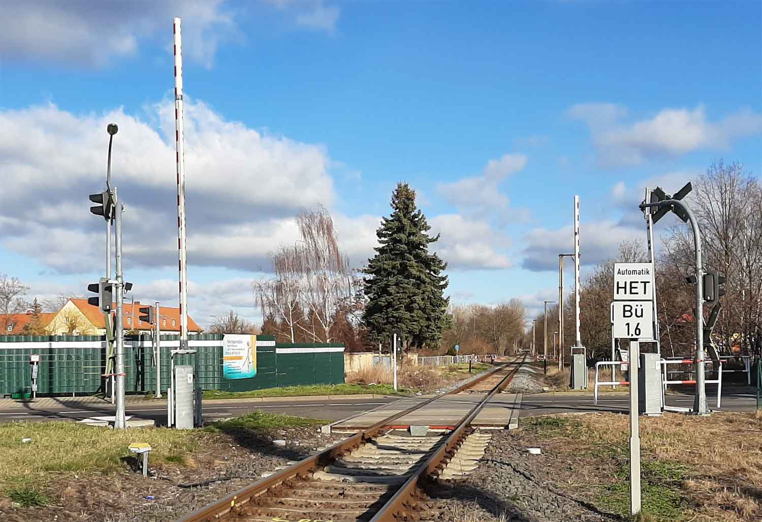 BÜ km 1,6 zwischen Böhlen (b Leipzig) und Rötha - Blick Richtung Böhlen (b