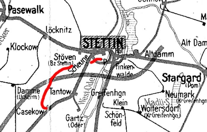 Stand der Kilometrierung: 1945 Barnisław (Barnimslow) 30,7 - Pomorzany Port (Pommerensdorf
