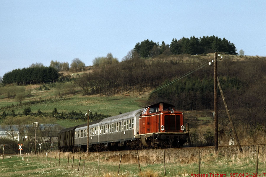 213 340 mit 67968 am 08.05.1987 im Bf Eibelshausen am km 11,6