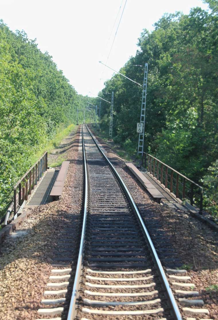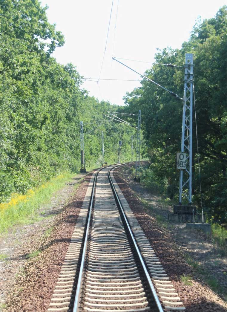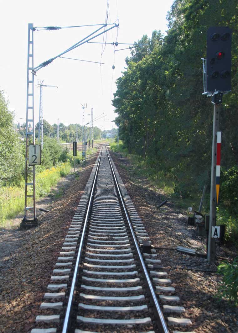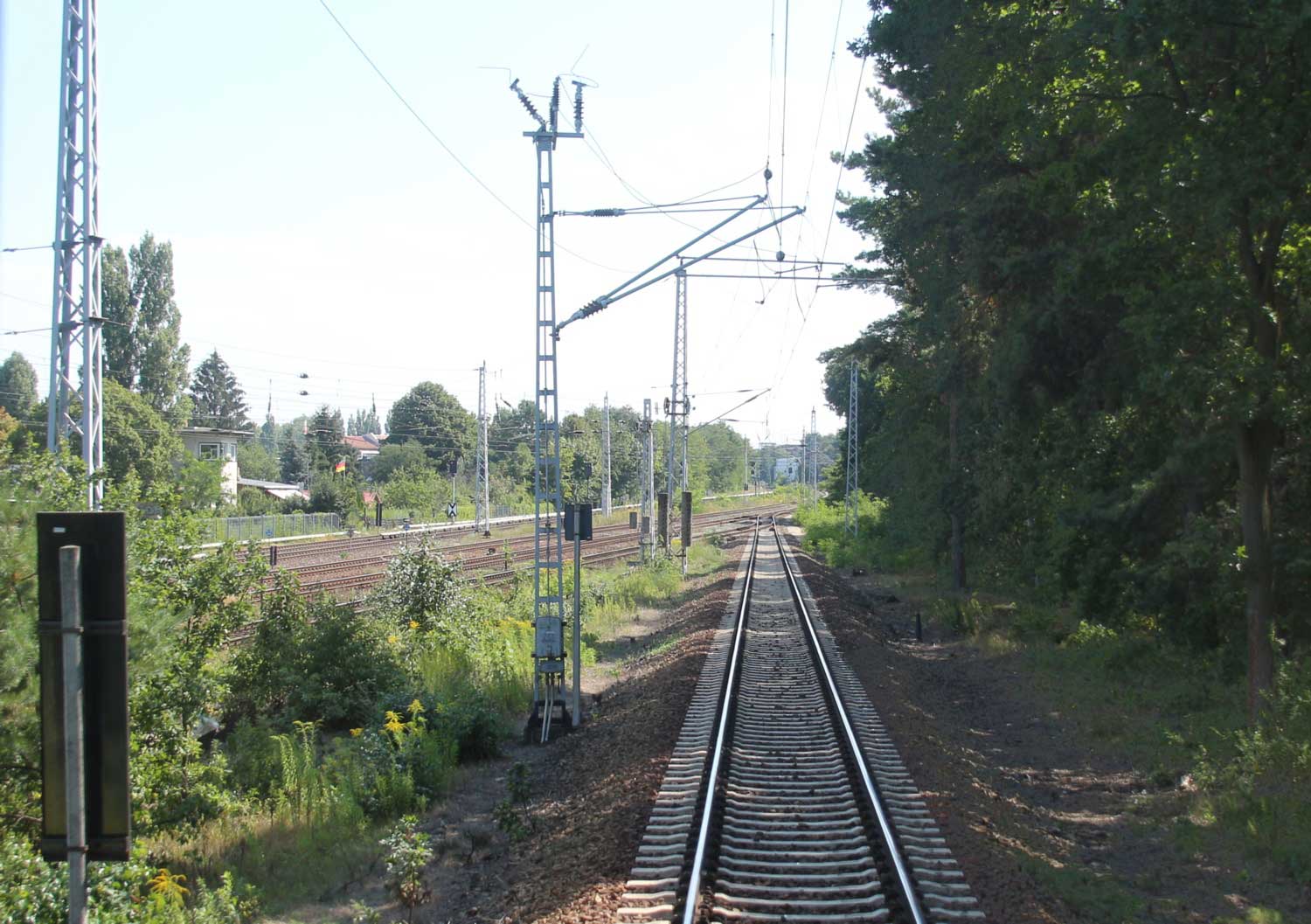 | Abzw Berlin Stadtforst, W 1 | Strecke Berlin Eichgestell, W 14 km25,76 - Abzw Berlin Stadtforst, W 1 km 27,7 (6148) weiterlaufende Kilometrierung vom Berliner Außenring (BAR) | |