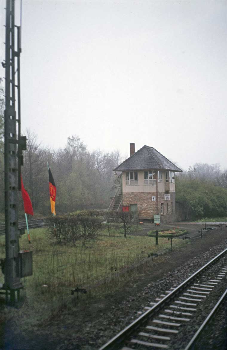 | km -0,10 der Strecke Helmstedt -0,10 - Grasleben Gbf 15,88 - Streckenunterbrechung - Grenze DDR/BRD 17,539 - Weferlingen 19,13 - Döhren (Sachs-Anh) 23,17 Grenze SDDR/BRD (Streckenunterbrechung) 23,67 - Grenze BRD/DDR (Streckenunterbrechung) 34,11 - Oebisfelde 35,54 |
