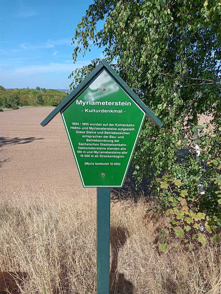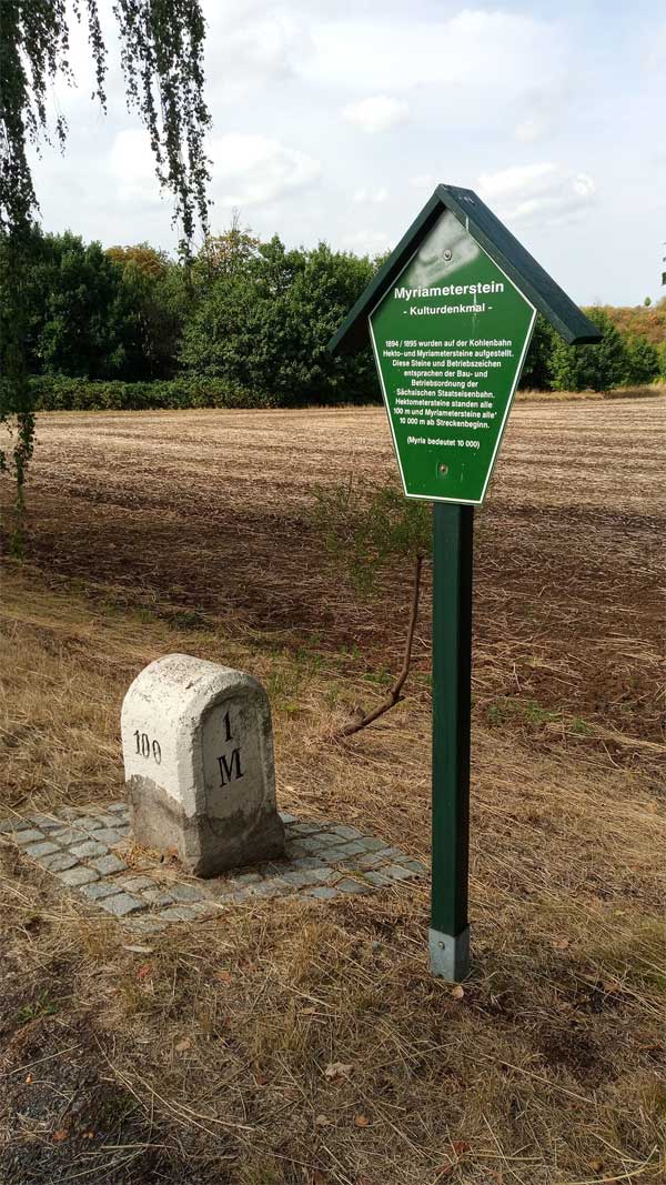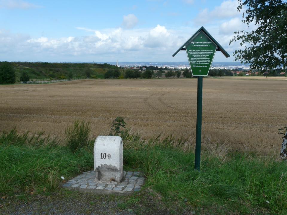 Myriametersteinstein (km 10,0) zwischen Cunnersdorf (b Freital) und Bannewitz