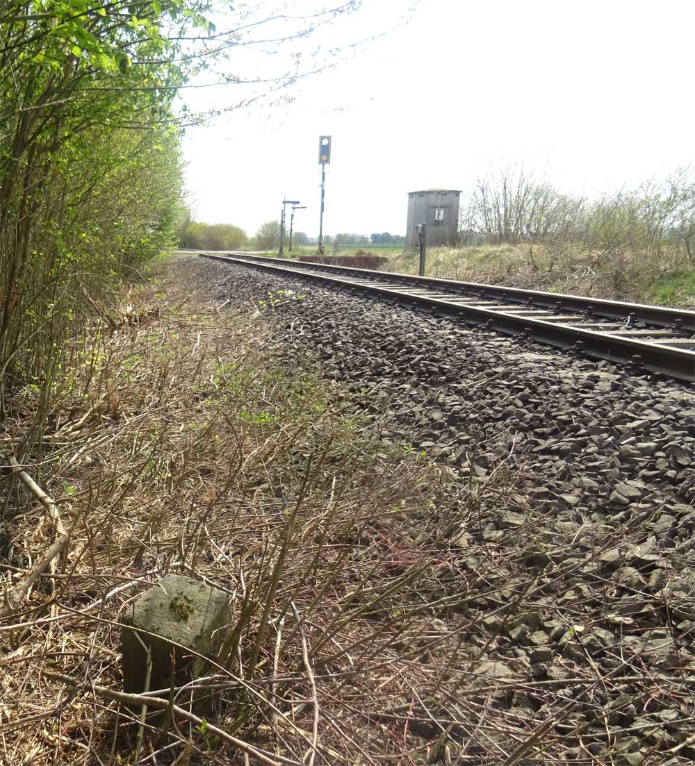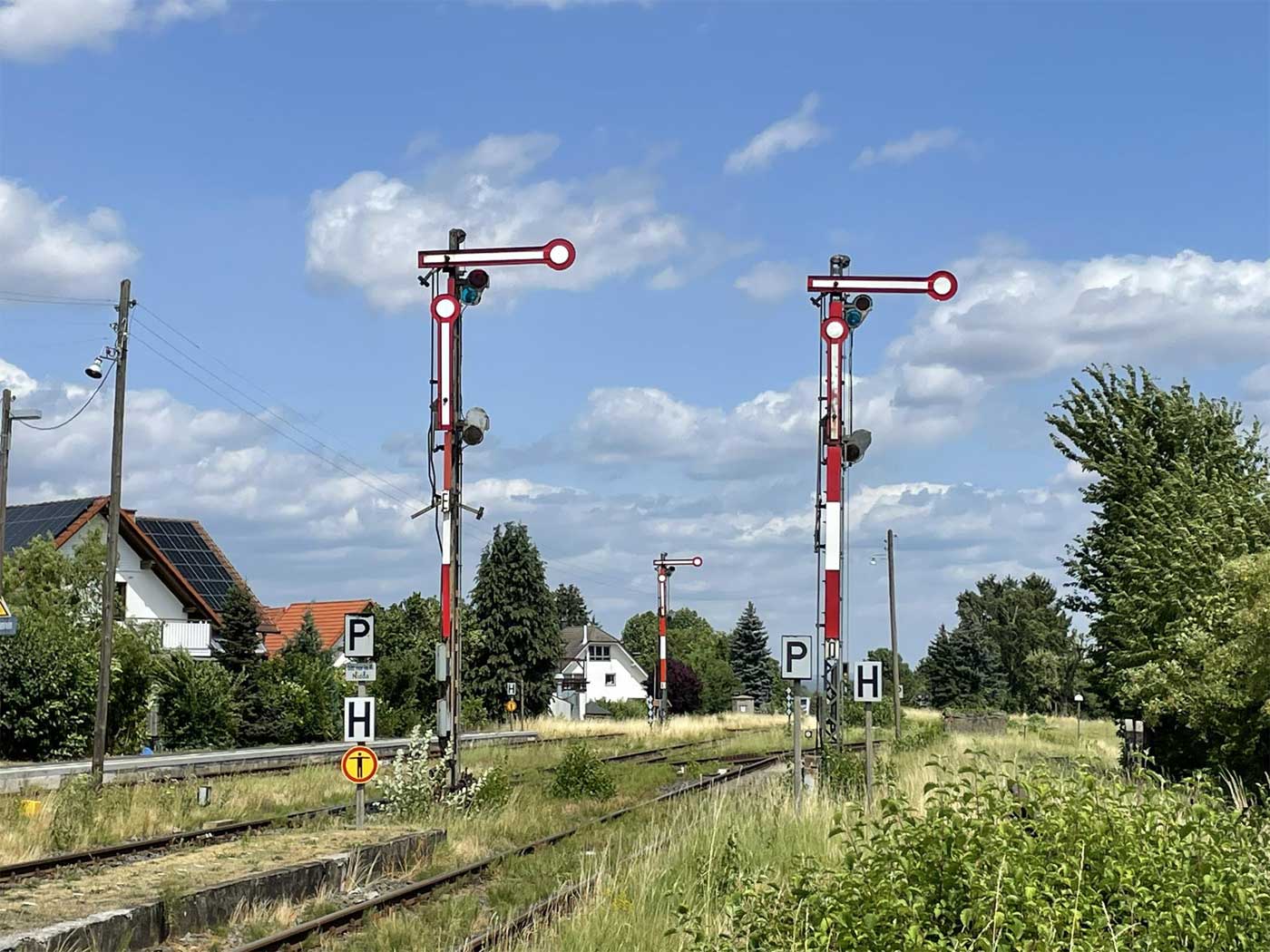 Spannwerke, Hektometerstein, Freileitung, Signale, Uhr, absenkbare Lampe und natürlich die Lok und der Schienenbus