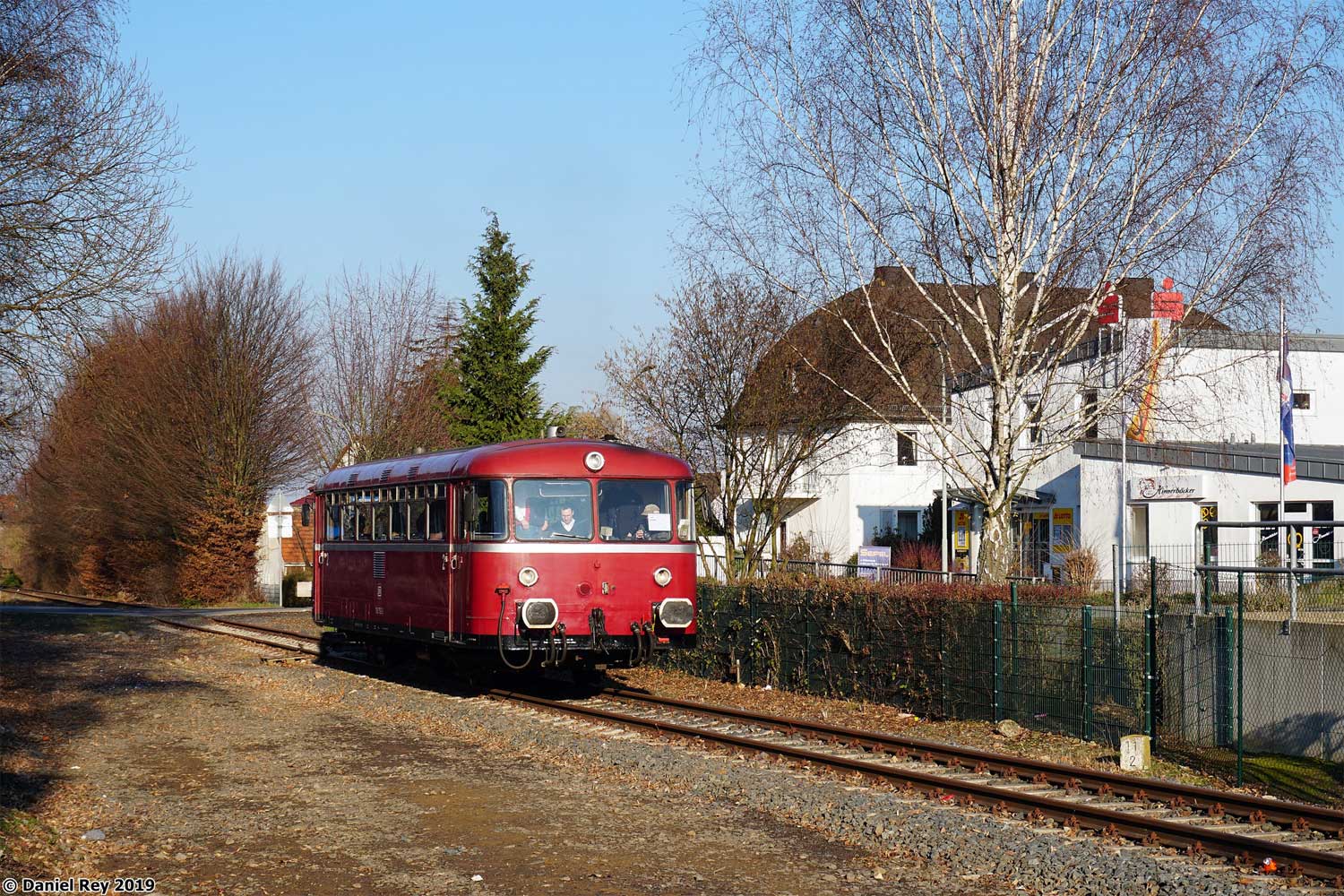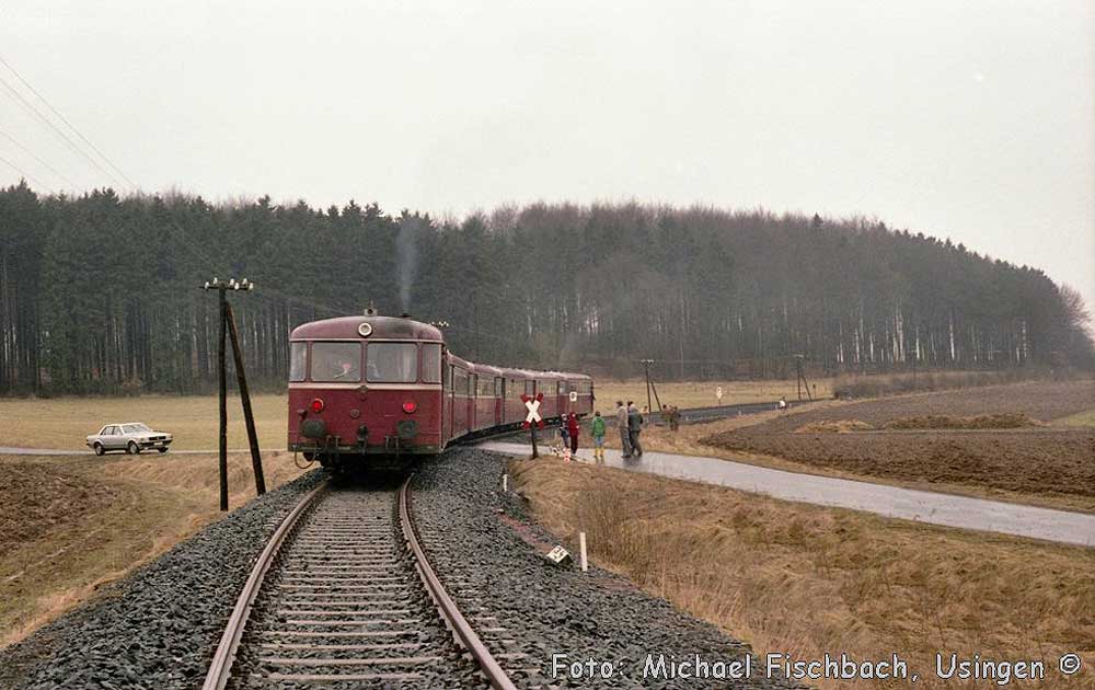 Schienenbussonderfahrt - Fotohalt zwischen Laubach und Wetterfeld am km 34,7