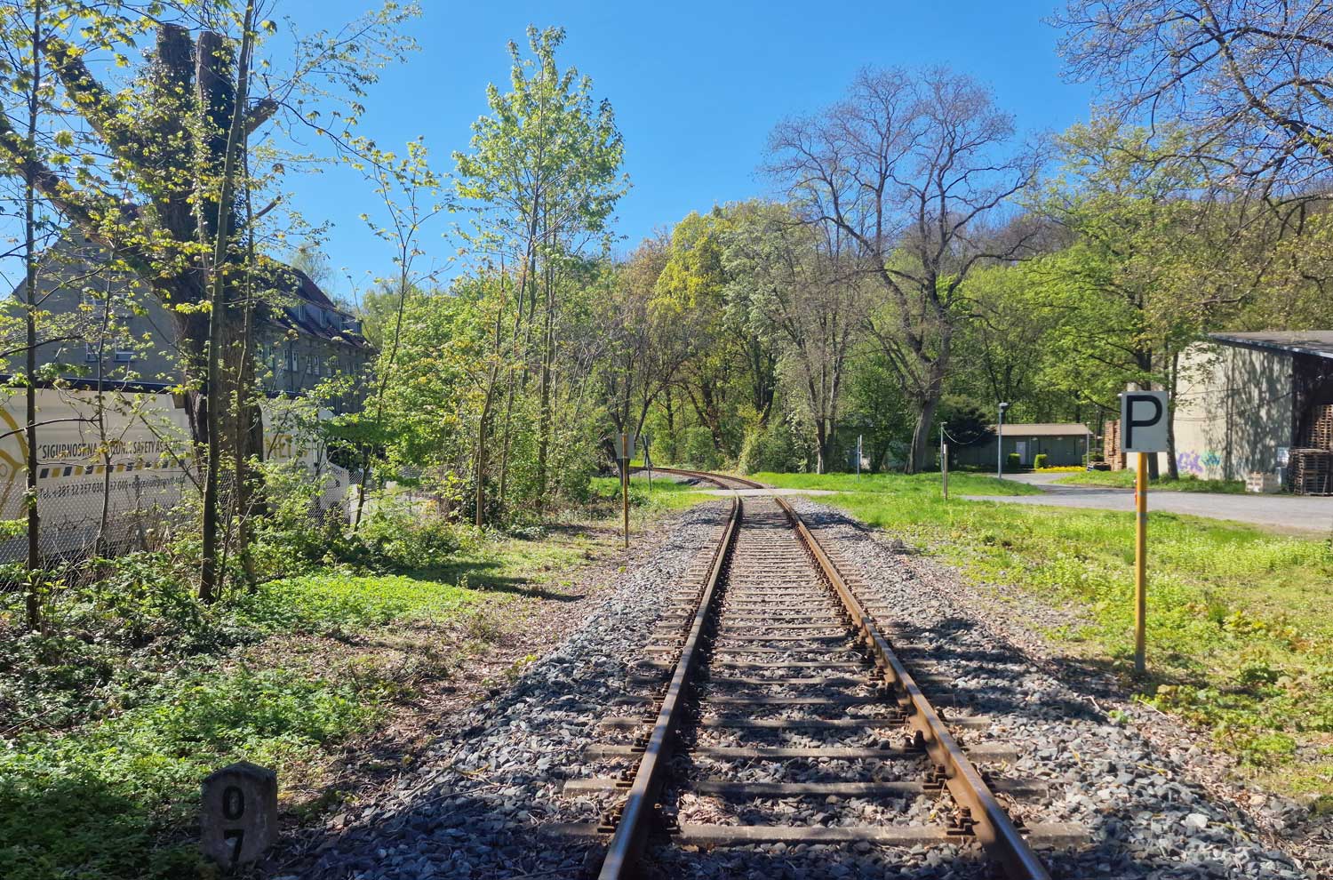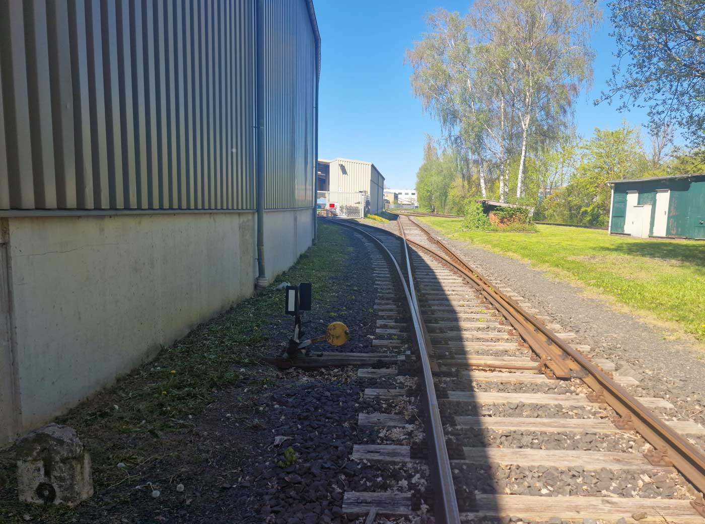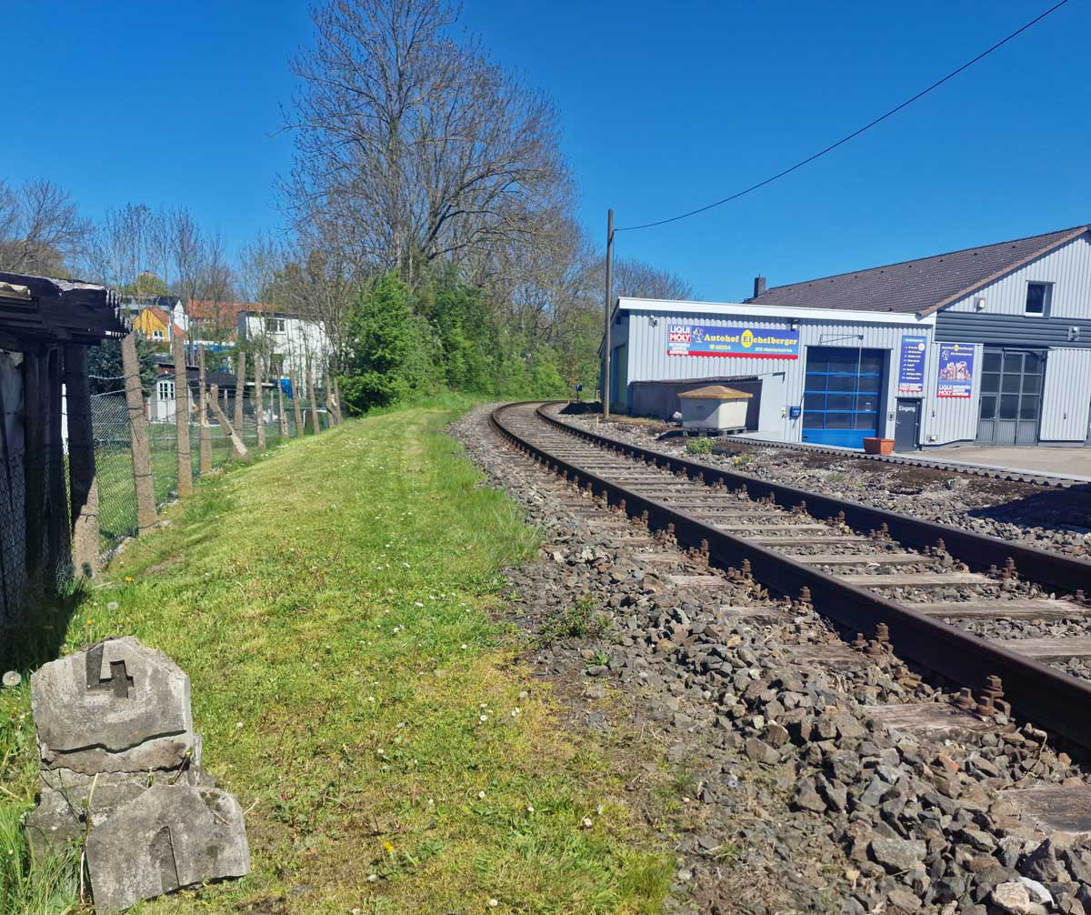 Rechts das Gleis der Göttinger Industrieanschlußbahn mit der Weichenverbindung zum Hauptgleis