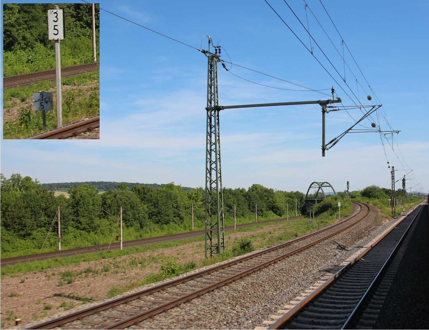 | km 246,73 der Strecke Frankfurt (Main) Hbf 0,0 - Hanau 22,92 - Schlüchtern 74,34 - (bis 1913: Elm 82,0 - Flieden 92,3) - (ab 1913 Distelrasentunnel) Flieden 85,240 = 92,195 (siehe auch Tabelle 5, Ziffer 3) - Fulda 110,56 - Bebra 166,634 - Eichenberg 227,32 - Göttingen 247,11 | ||