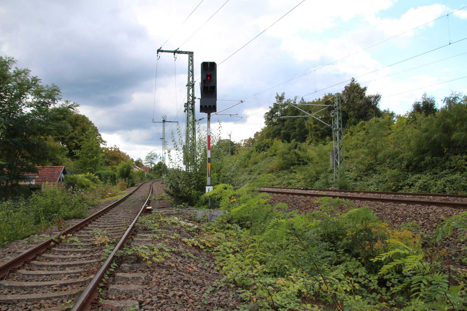 Links die Strecke Berlin-Grunewald 0,0 - Abzw Gdo 0,70 - Berlin-Halensee 2,19 bei km 1,5