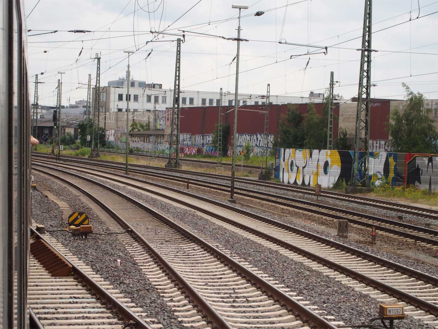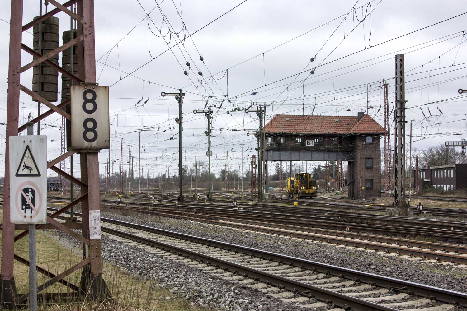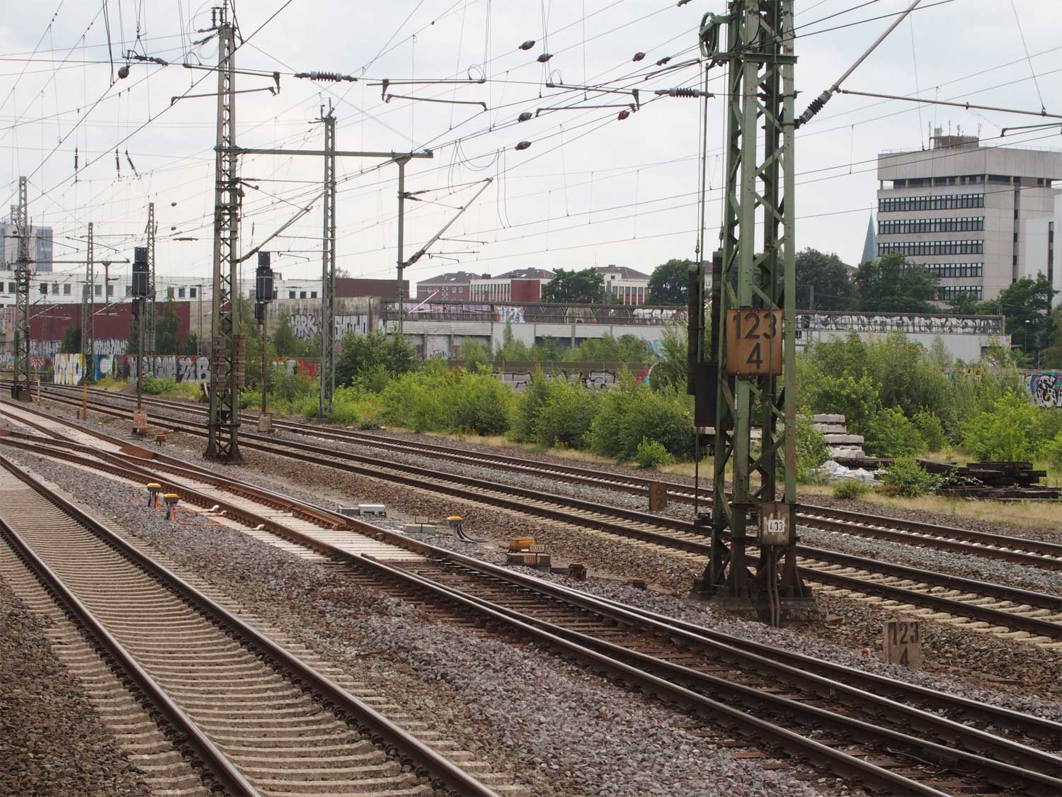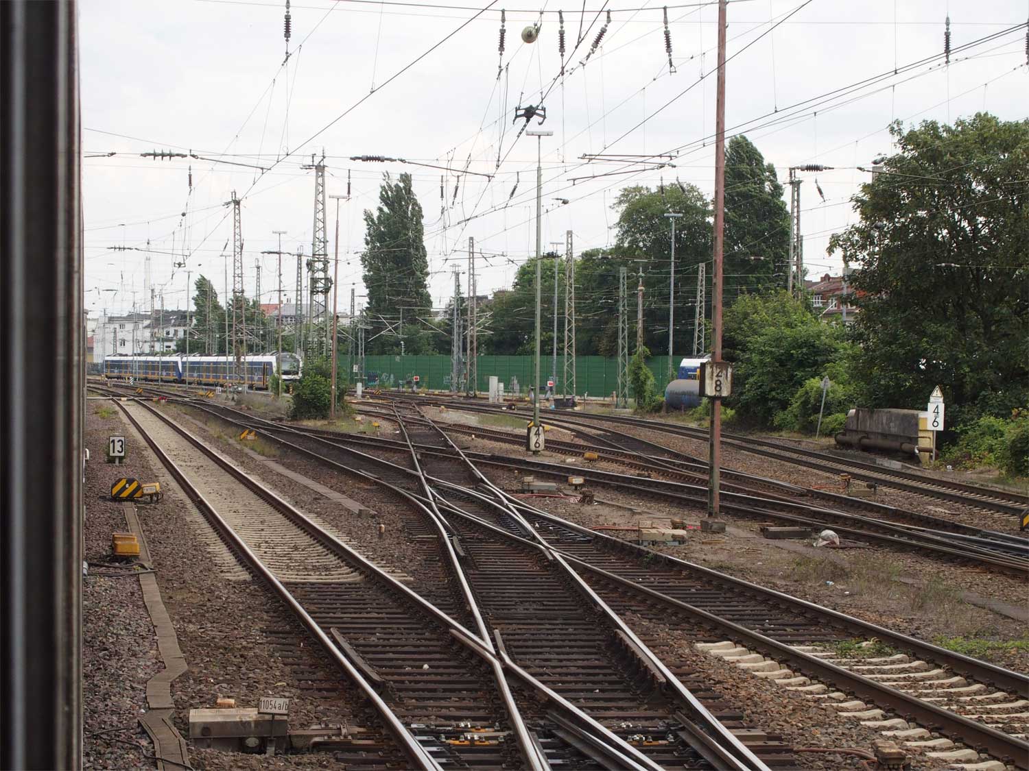 Ganz links die zwei Gleise der Strecke Wanne-Eickel Hbf - Bremen Hbf - Hamburg Hbf (2200),