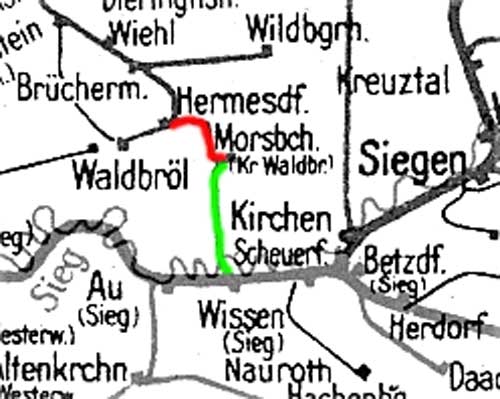 Stand der Kilometrierung: 1945 Wissen (Sieg) 0,0 - Morsbach (Sieg) 11,14