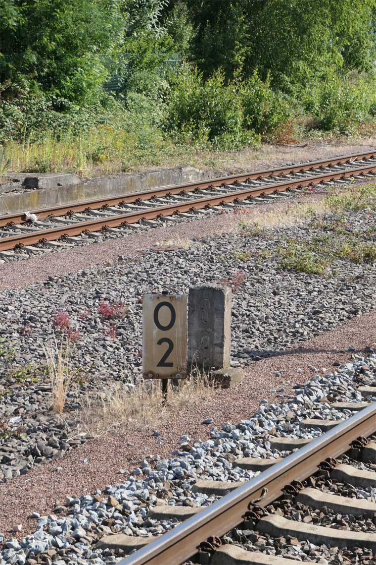 km 0,0 der Strecke Zweibrücken Hbf 0,0 - Brenschelbach 13,10 - [Staatsgrenze 13,305 (auch Angabe 13,939) - weiter geplant bis Wingen-sur-Moder] | ||