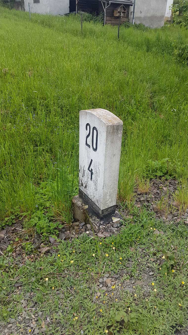 km 104,4 (Stein und Tafel) gehört zur Strecke (Bruchsal -0,08