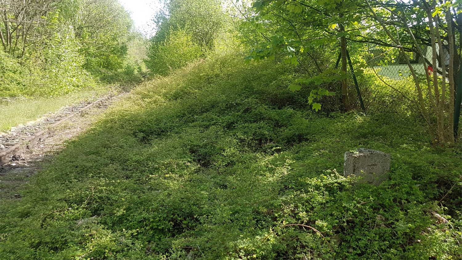 ein Gleis. Der zweigleisige Ausbau zeigt die