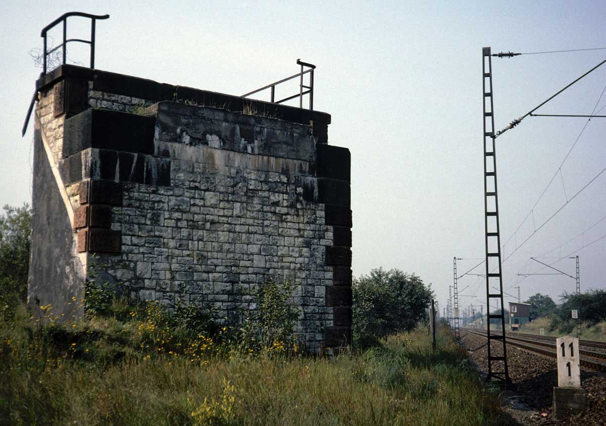 Reste des Brückenbauwerkes der Strecke Frei Weinheim 0,0 (ab 1939: Ingelheim Rheinbahnhof) -