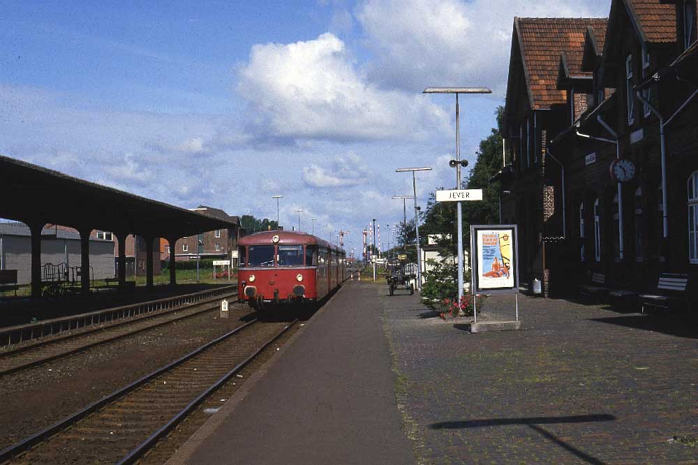 | Jever | 0,0 | km 12,96 der Strecke Sande 0,0 - Jever 12,96 - Landesgrenze Oldenburg/Niedersachsen km 16,06 = [km 77,90 - Asel 76,16 - Norden 30,41 (kommend)/ 31,56 (gehend nach Jever) - Emden Süd 0,0] |