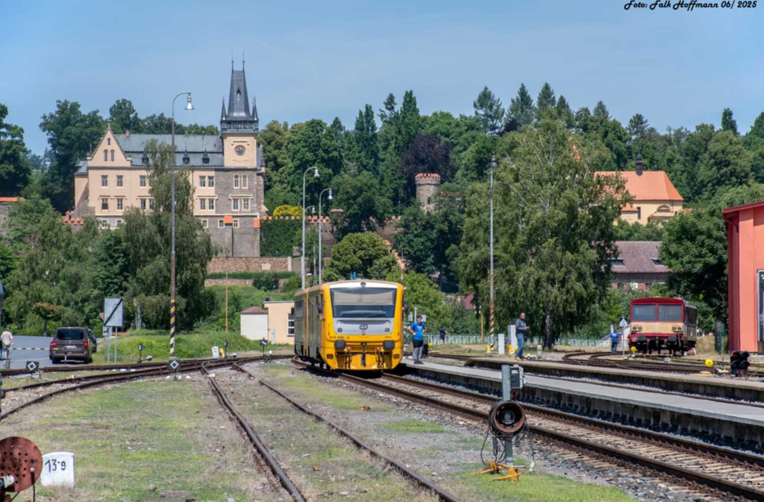 km 7,7 zwischen Český Šternberk zastávka (Böhmisch Sternberg Haltestelle / Český Šternberk zastávka) und Soběšín (Sobieschin / Soběšín)