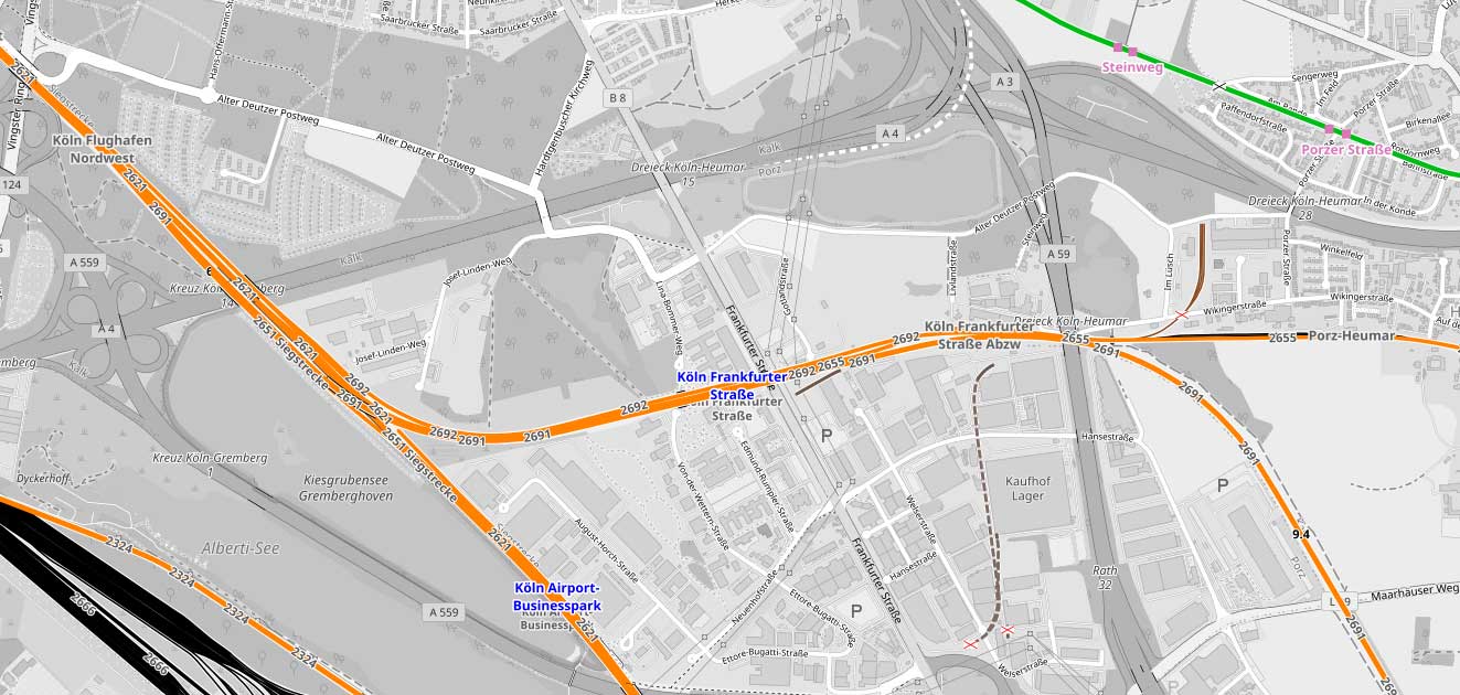 Abzw Köln Flugh. Nordost, W 404, km 0,0 - Abzw Köln Frankfurter Straße, W 3115, km 2,303 (2692)