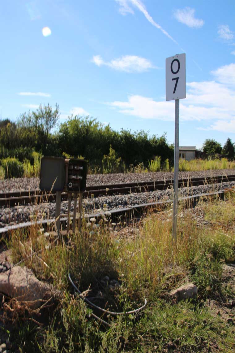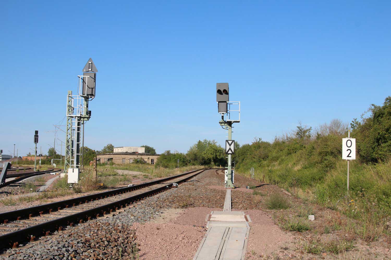 bei km 2,0 (rechts) in Köthen Gbf, Abzw Stw W 7 km 53,4 gehört zur Strecke Magdeburg Hbf 0,0 - Köthen 49,80 - Halle (Saale) Hbf 86,03 -