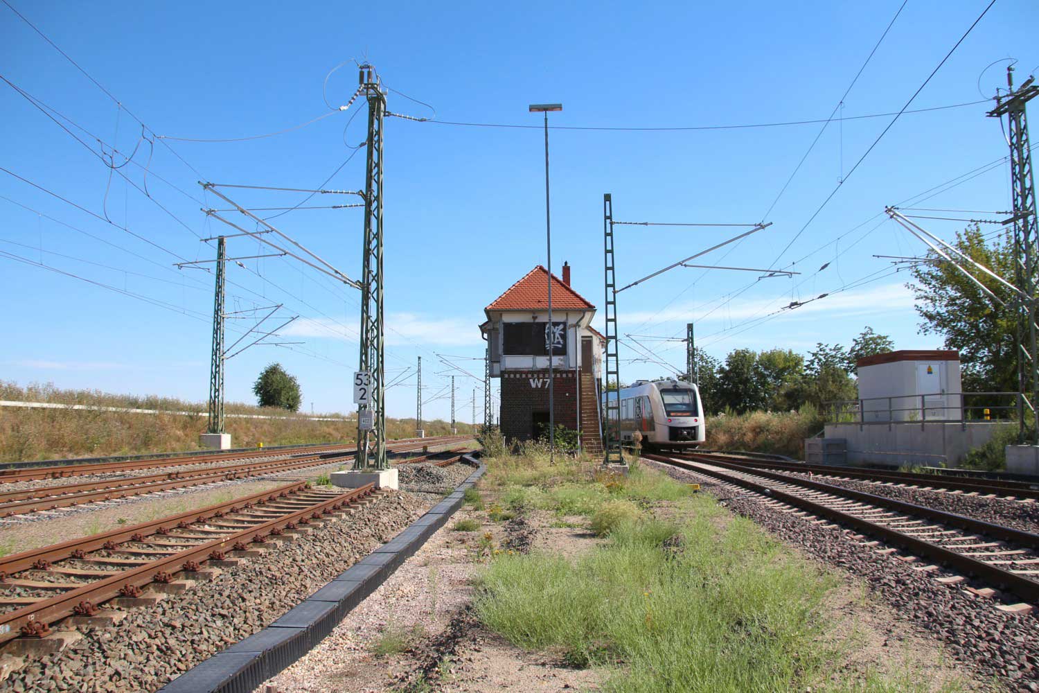 bei km 1,9 (rechts) in Köthen Gbf, Abzw Stw W 7 km 53,2 gehört zur Strecke Magdeburg Hbf 0,0 - Köthen 49,80 - Halle (Saale) Hbf 86,03 -