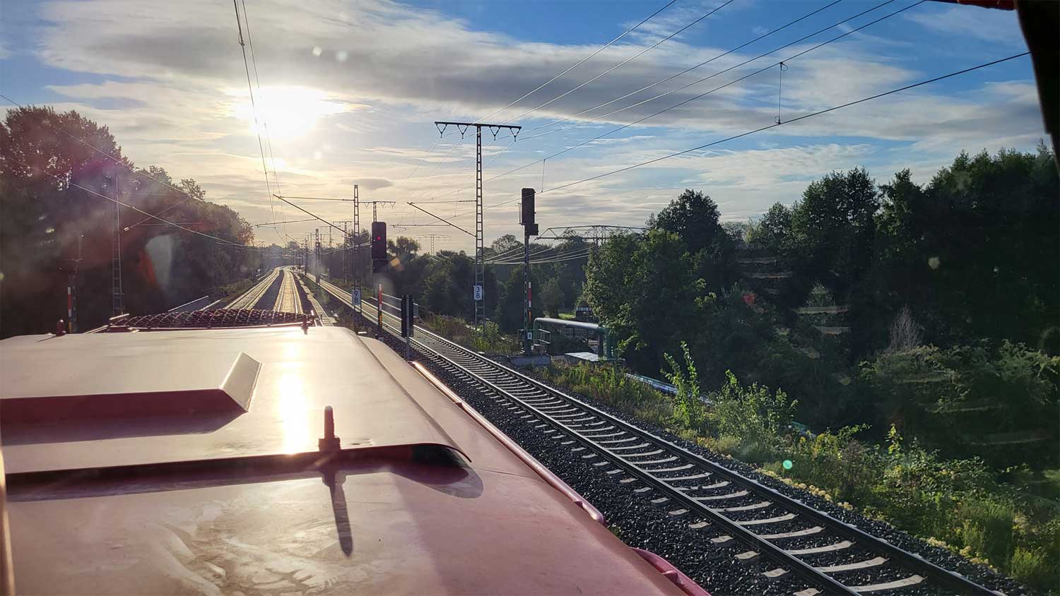 Der Zug befindet auf dem Verbindungsgleis zur Strecke