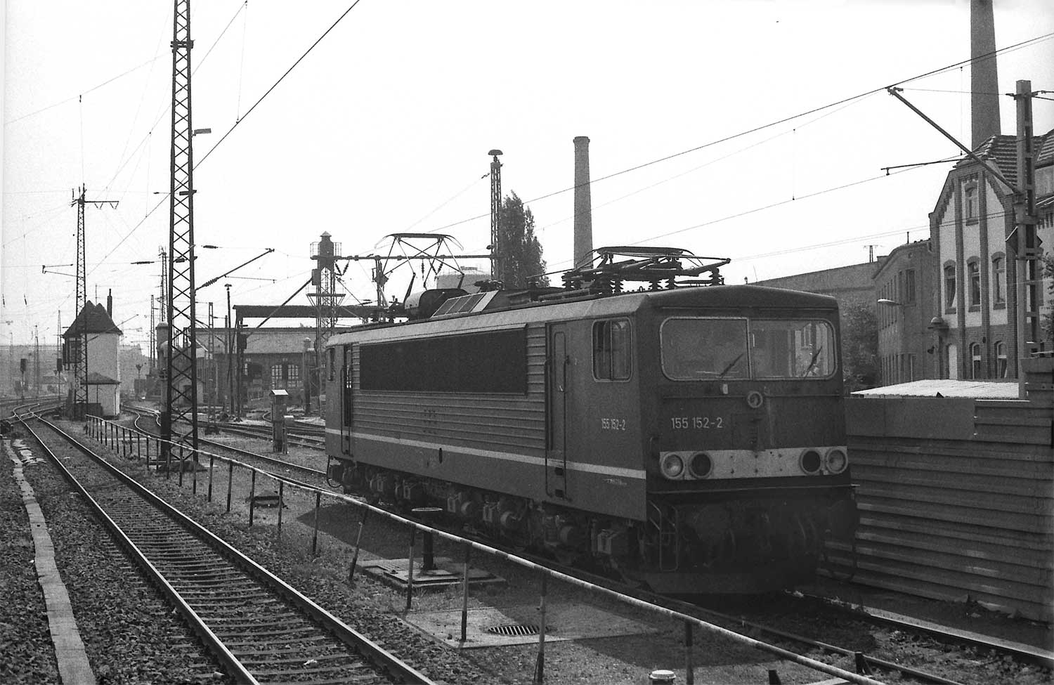 km 0,0 (im Hintergrund vor dem Stw W7) am Bw Leipzig West - 155 152
