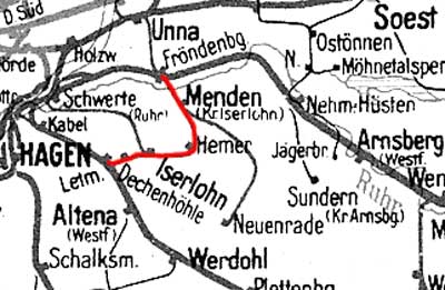 Letmathe 0,0 - Iserlohn 5,50 - Hemer 13,67 - Menden (Kr Iserlohn) 20,38 - Fröndenberg 25,02