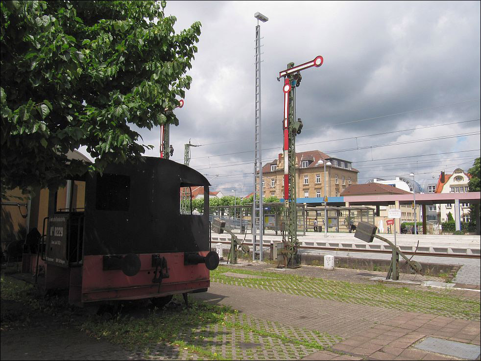 km 45,5 und im Vordergrund die „Kö 0229” am Domizil der Eisenbahnfreunde Kraichgau.